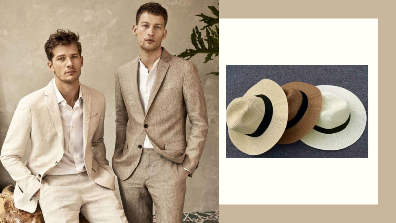 Với những đám cưới tổ chức ở biển outfit sẽ là blazes và sơ mi linen . Mặc với quần trắng cùng giày oxford để có sự chuyển tone màu nhẹ nhàng . Cùng với chiếc mũ cói panama để phù hợp với những ngày trời nắng trên biển.