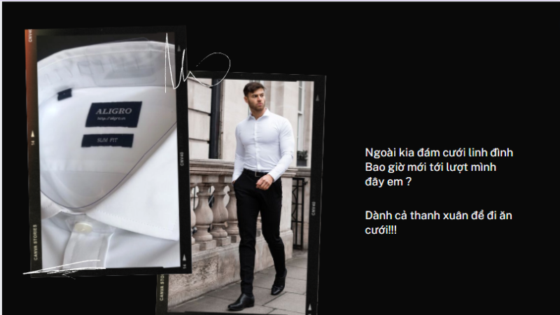 Bạn có thể lựa chọn trang phục đi đám cưới thoải mái hơn nhưng vẫn đảm bảo tính lịch sự. Bộ đồ không nên quá đơn giản nhưng cũng không cần màu mè. Nếu bạn diện một bộ đồ quá đơn giản, bạn sẽ không nổi bật; còn nếu là bộ đồ quá màu mè thì lại trở nên “lố bịch”. Chính vì thế , áo sơ mi trắng kết hợp với quần tây đen là một outfit không thể bỏ qua. Nó sẽ giúp bạn có một vẻ ngoài thanh lịch và cuốn hút. Để tạo điểm nhấn bạn nên diện một giày màu đen.