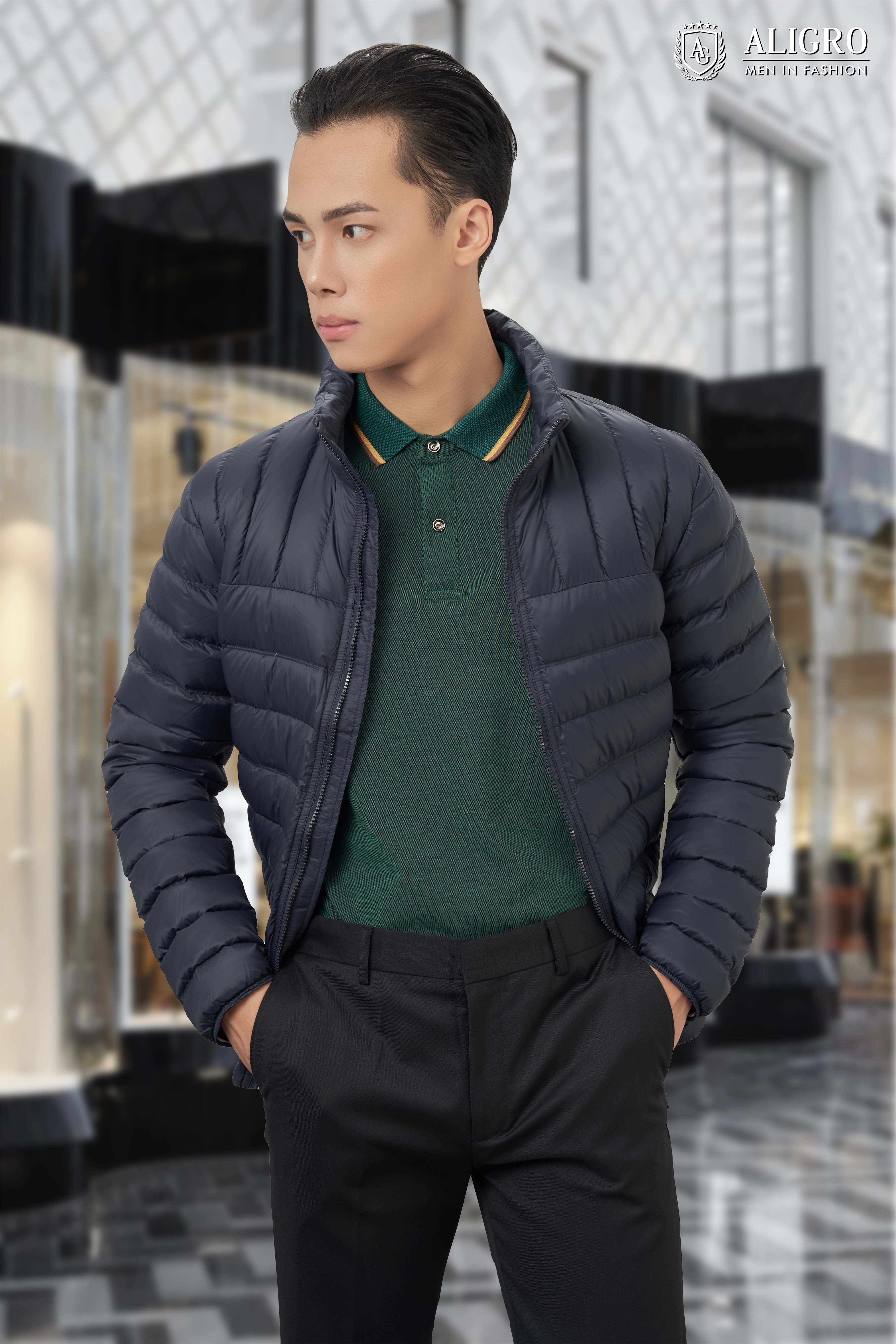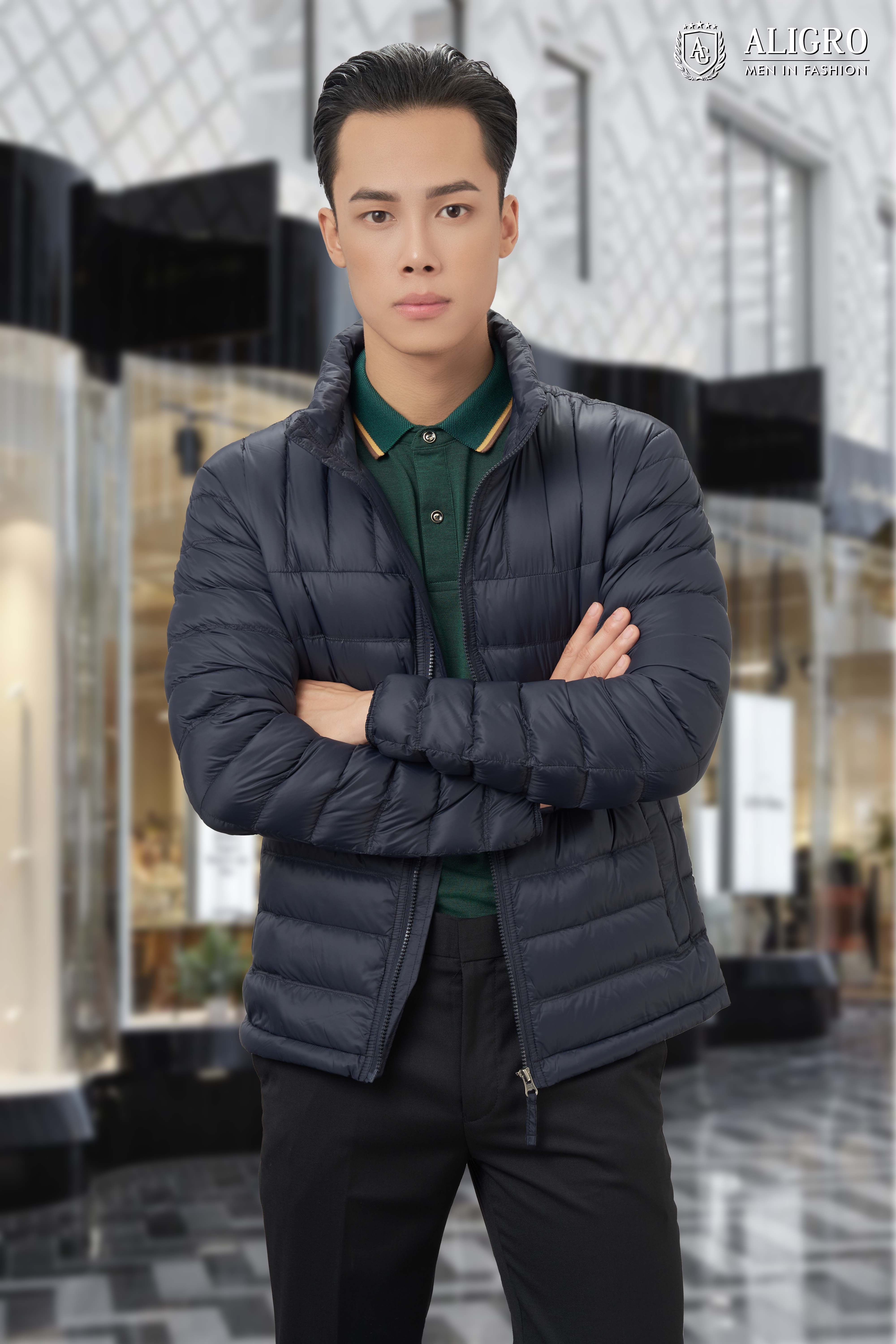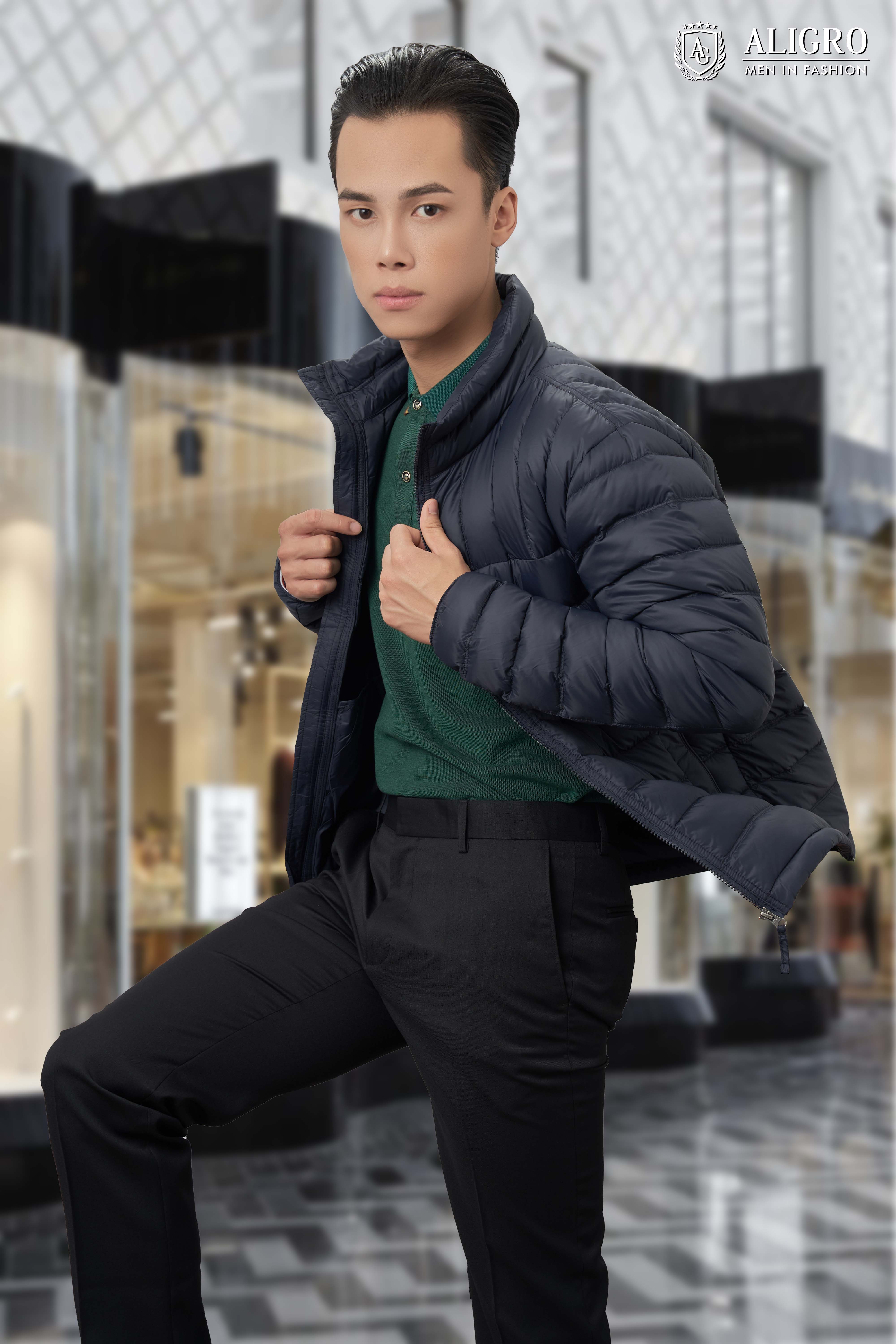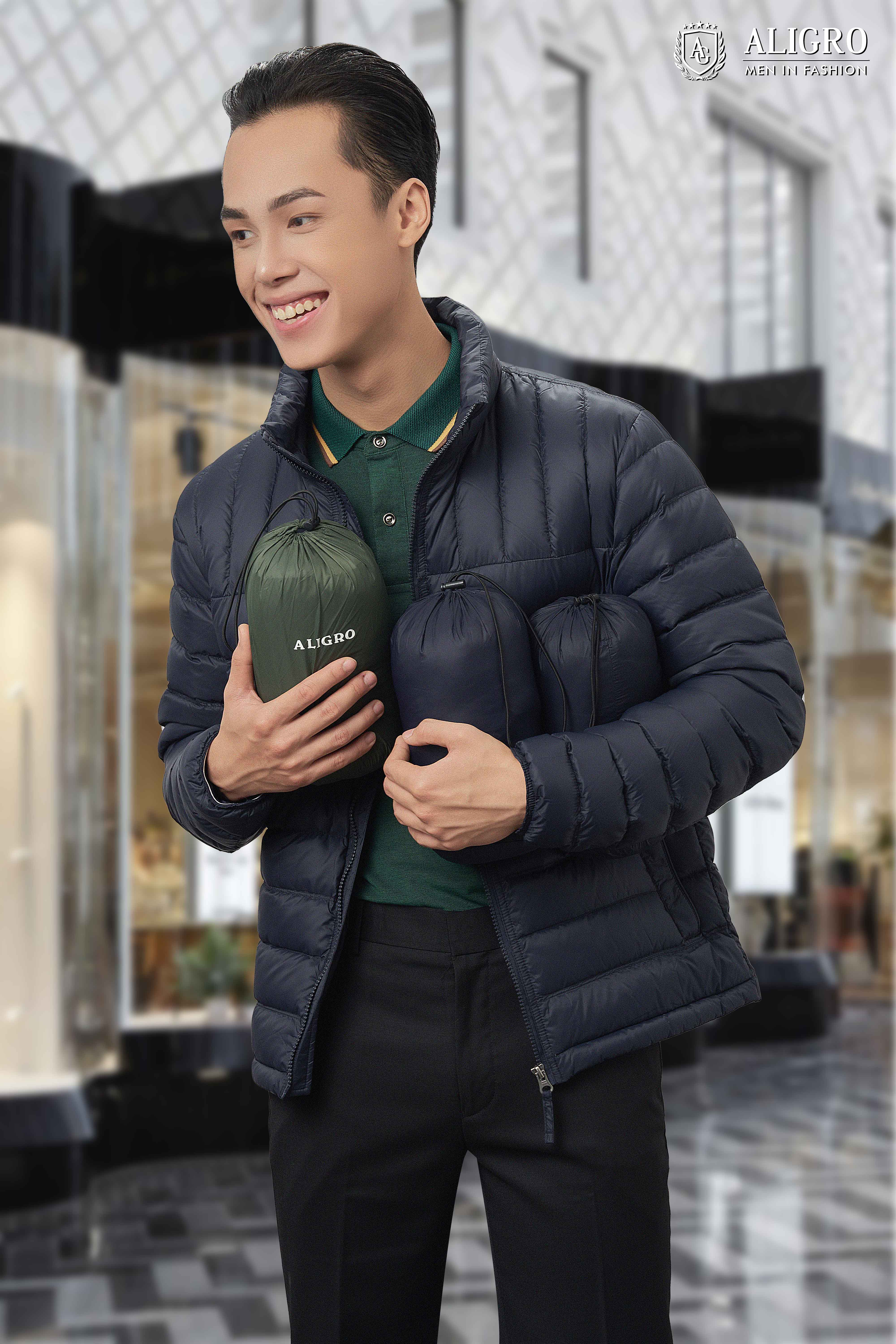 Áo khoác lông vũ Aligro màu rêu mang đến cho phái mạnh sự thoải mái tối đa.