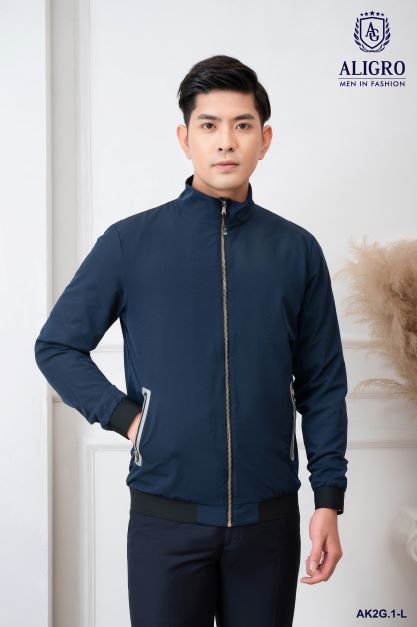 Áo khoác Golf nam 2 lớp Aligro ALGAK2G.1 màu navy, được may từ chất liệu vải  100% Polyester cải tiến cho bề mặt vải bóng mịn, sắc nét, giữ phom tốt, hạn chế nhăn nhàu. Đem đến cho phái mạnh sự thoải mái tối đa.