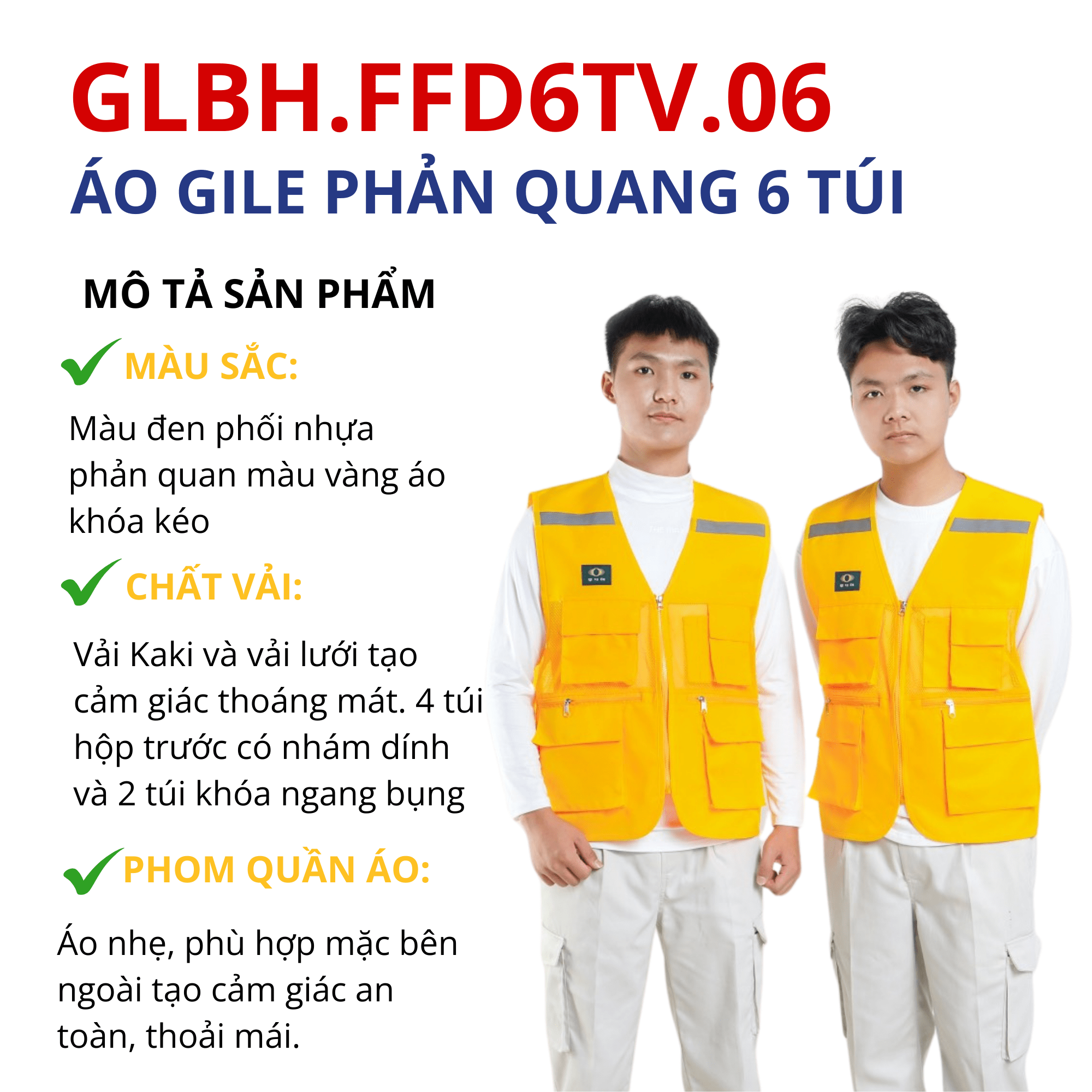 Trong môi trường làm việc yêu cầu cao về an toàn, tính chuyên nghiệp và sự tiện lợi, việc lựa chọn trang phục bảo hộ không chỉ là nhu cầu mà còn là tiêu chuẩn bắt buộc. Áo gile bảo hộ lao động 4 túi hộp và 2 túi khóa khác màu chất vải kaki 2/1 thấm hút tốt màu vàng GLBH.FFD6TV.06 đến từ thương hiệu ALIGRO chính là lựa chọn lý tưởng, kết hợp hài hòa giữa công năng – độ bền – tính thẩm mỹ nam cao cấp.