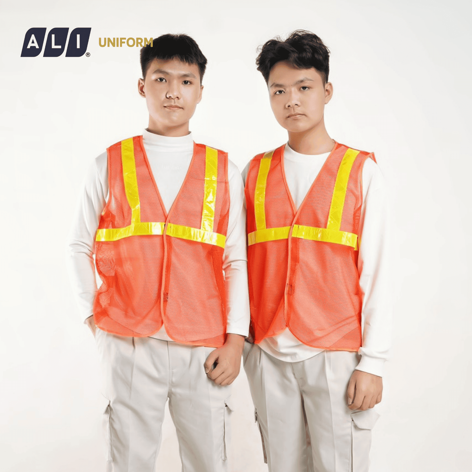 - Thiết kế: Áo may dây phản quang trước ngực và phía sau