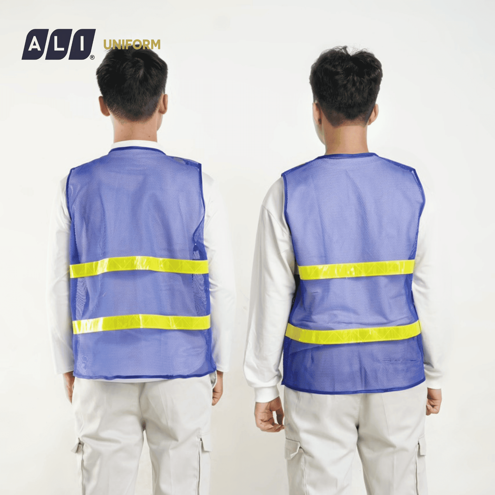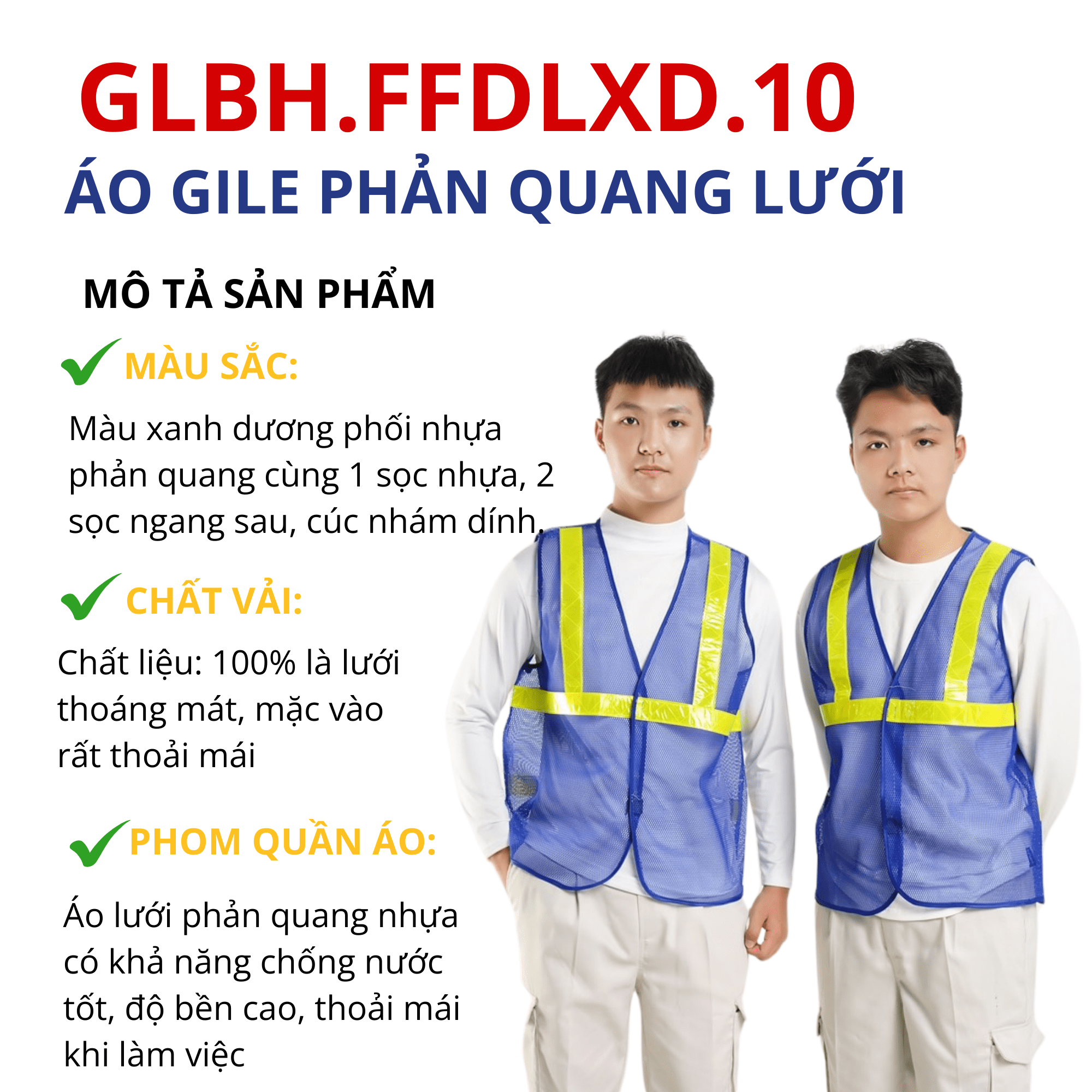 Áo gile bảo hộ lao động lưới phản quang nhựa màu xanh dương GLBH.FFDLXD.10