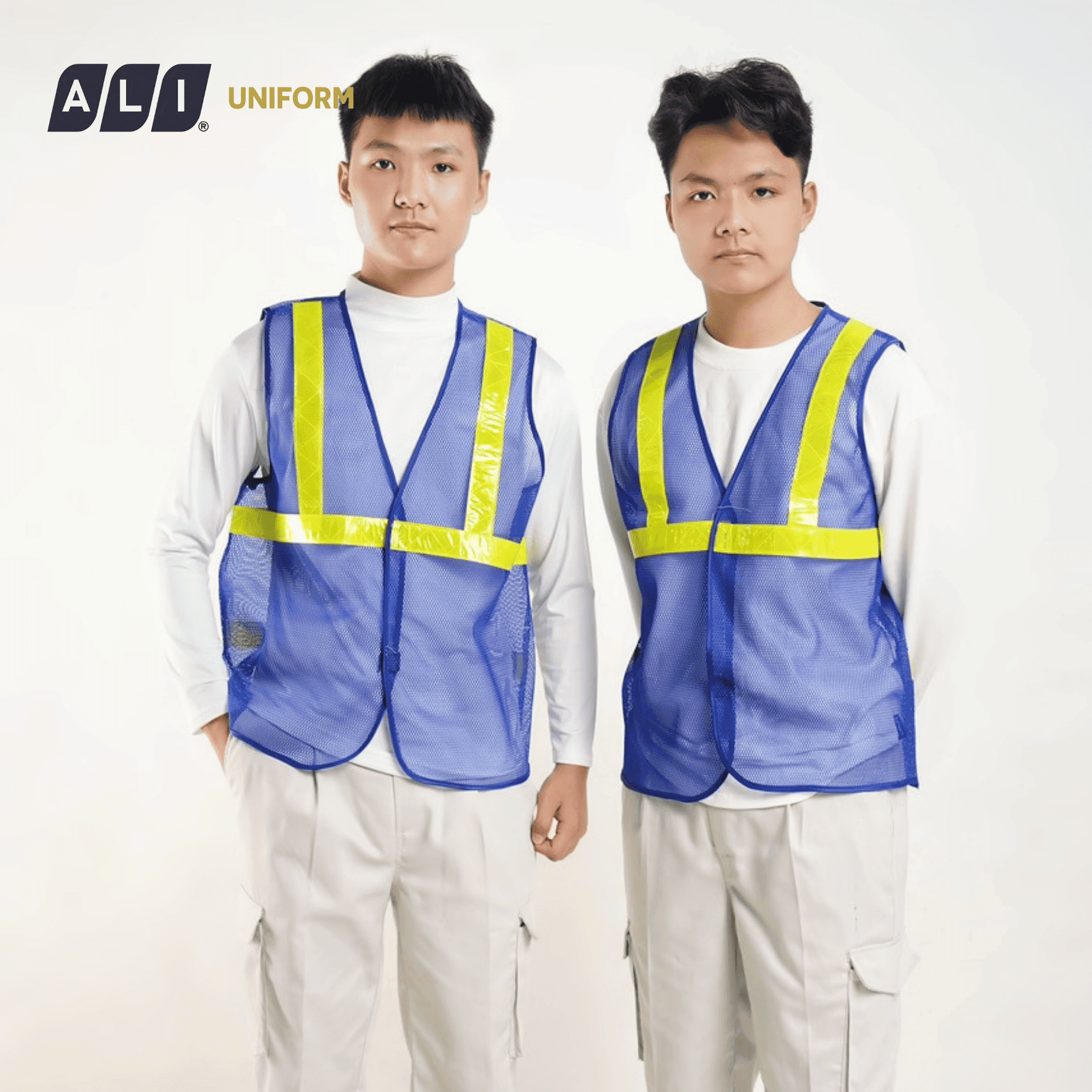 - Thiết kế: Áo may dây phản quang trước ngực và phía sau