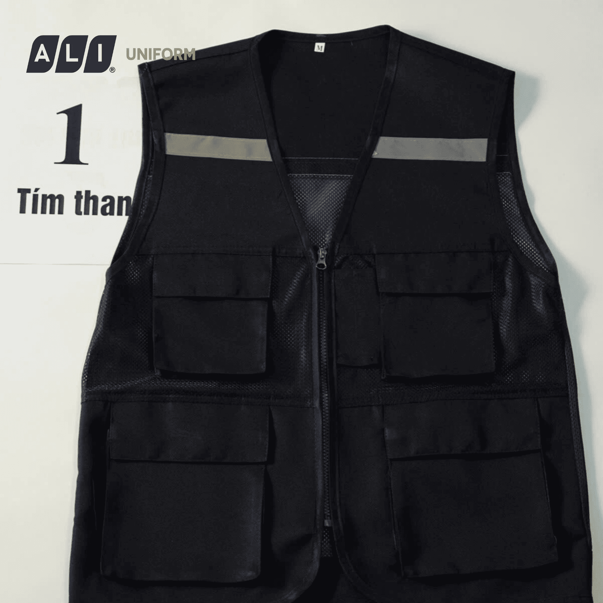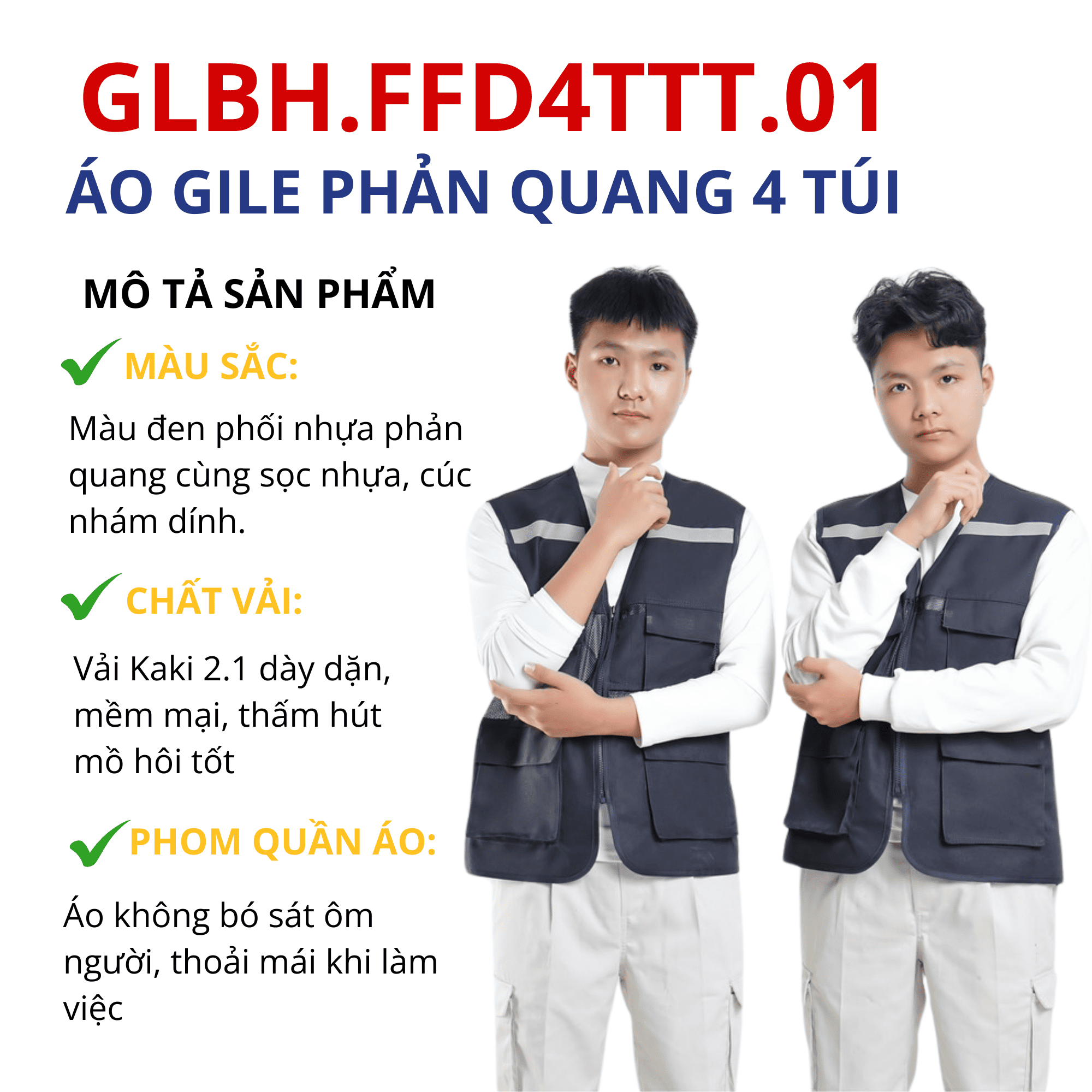 Áo gile bảo hộ lao động phản quang 4 túi màu TÍM THAN GLBH.FFD4TTT.01 là áo bảo hộ lao động được thiết kế dành riêng cho công nhân, kỹ sư, mang đến sự thoải mái và an toàn tối đa trong quá trình làm việc. Sản phẩm được may từ vải kaki hoặc vải lưới thoáng mát, trước và sau may thêm sợi phản quang màu ghi phù hợp với công nhân làm việc trong môi trường có ánh sáng yếu.