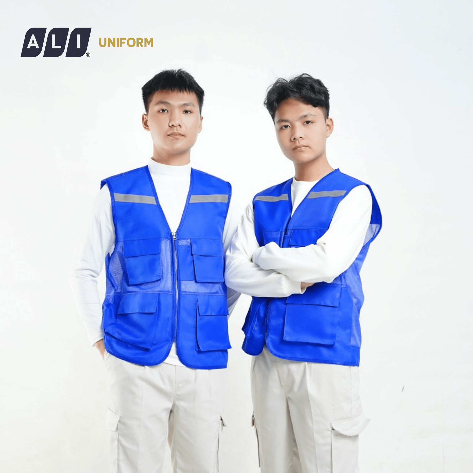 - Thiết kế: Áo may 4 túi hộp, may dây phản quang trước ngực và phía sau