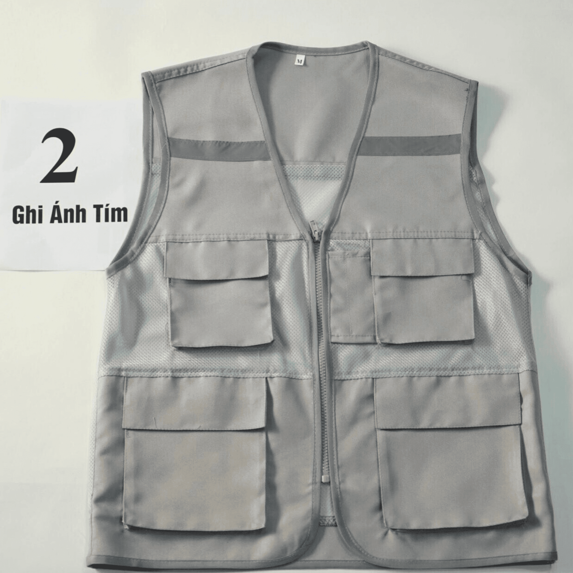 Áo gile bảo hộ lao động phản quang 4 túi chất vải kaki hoặc lưới thoáng mát, thấm hút tốt màu GHI ÁNH TÍM GLBH.FFD4TGAT.02