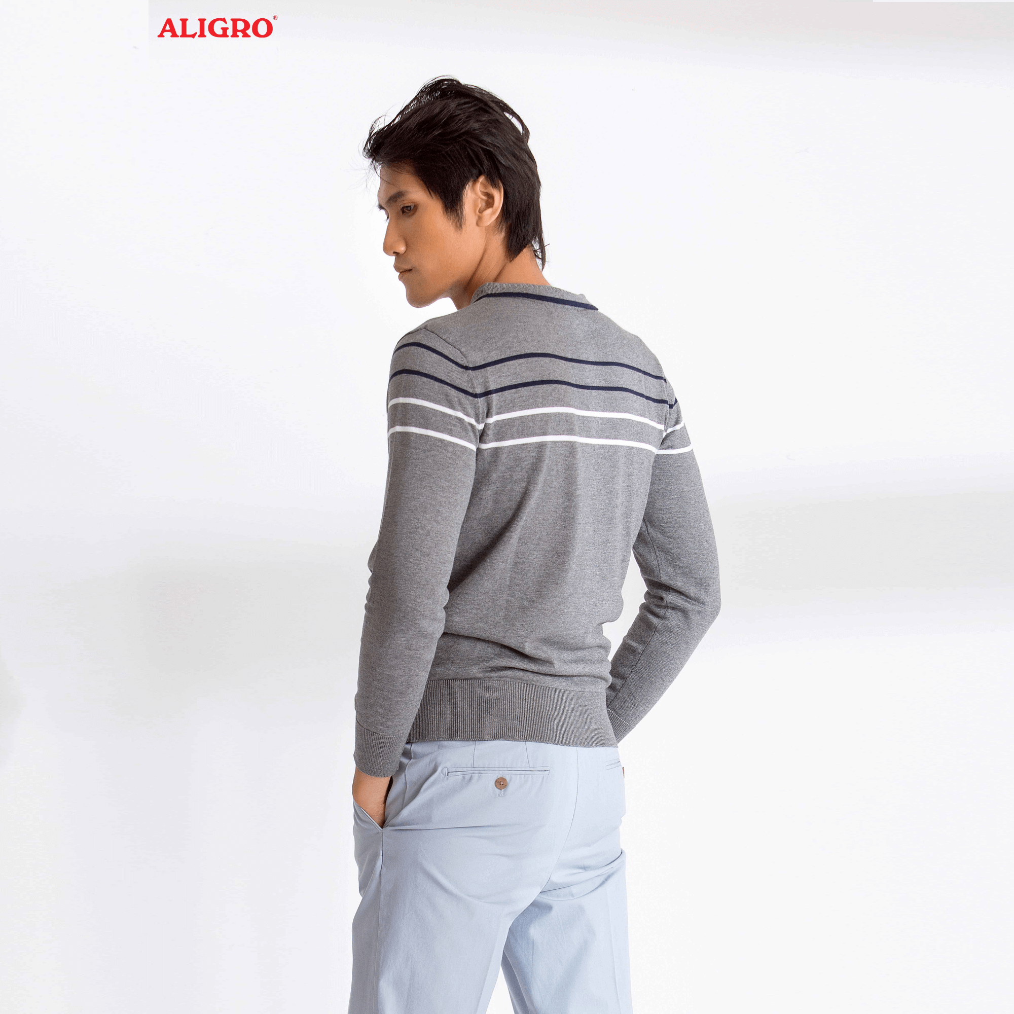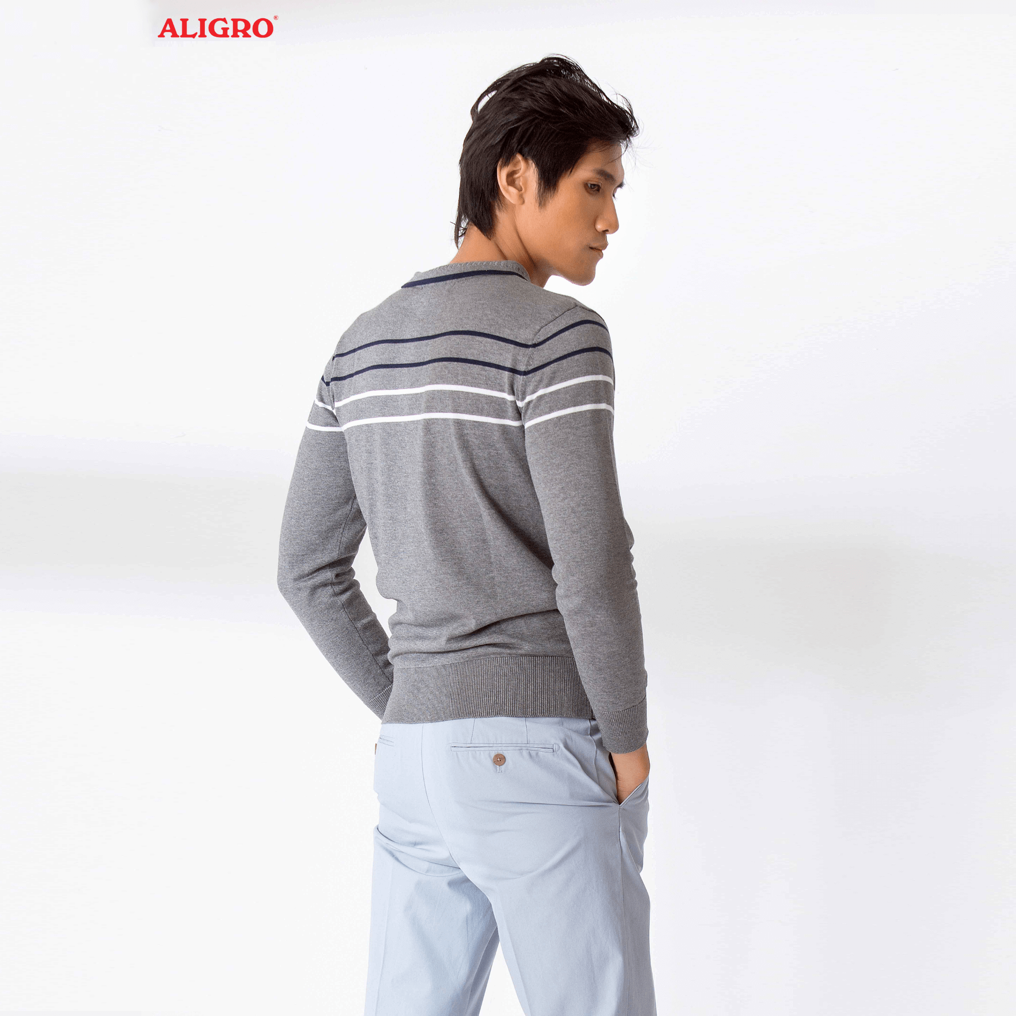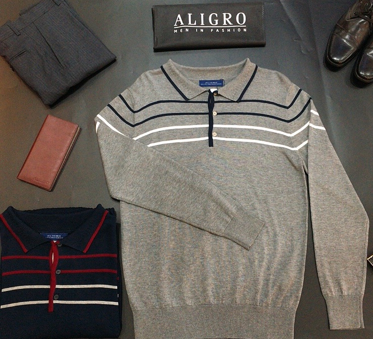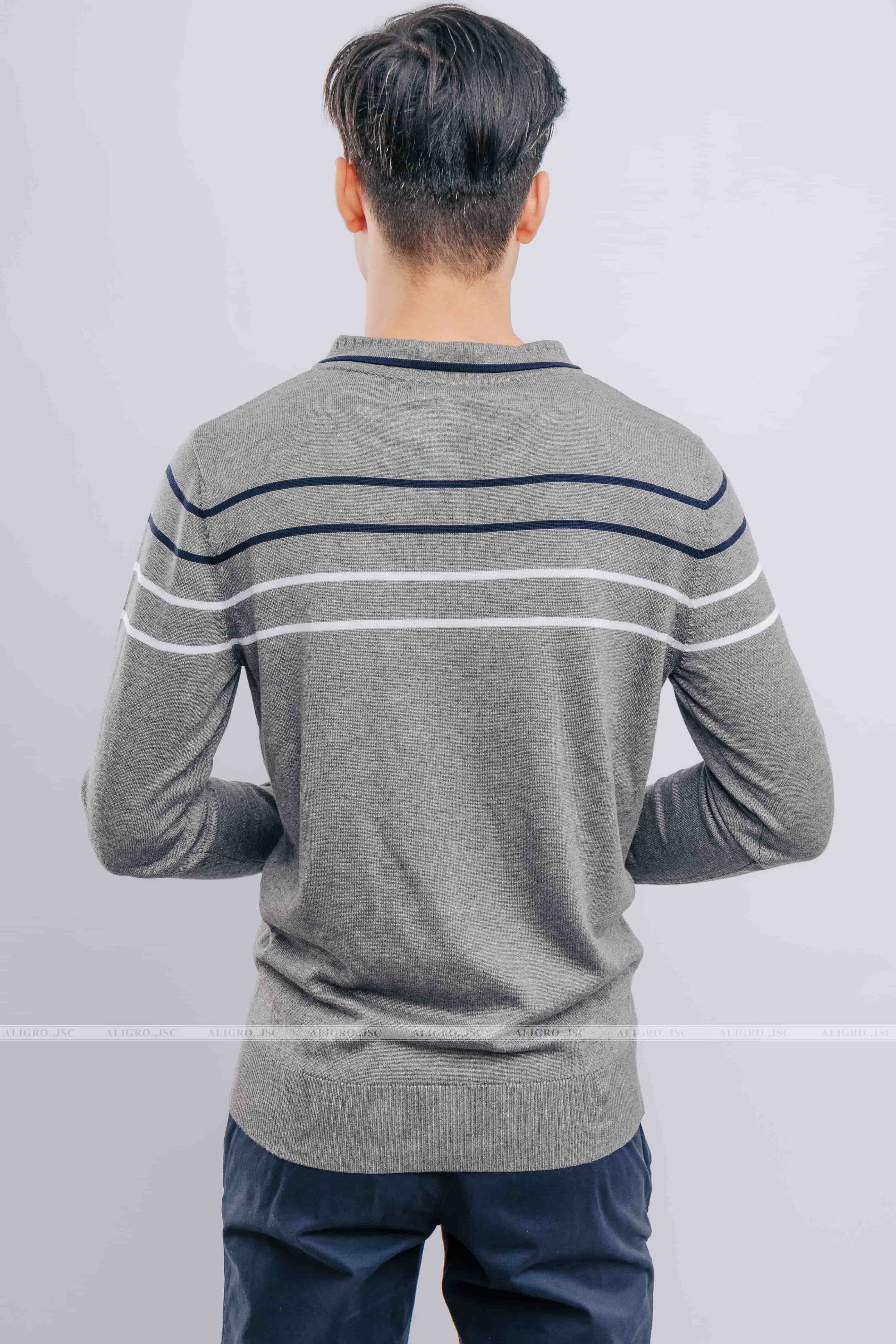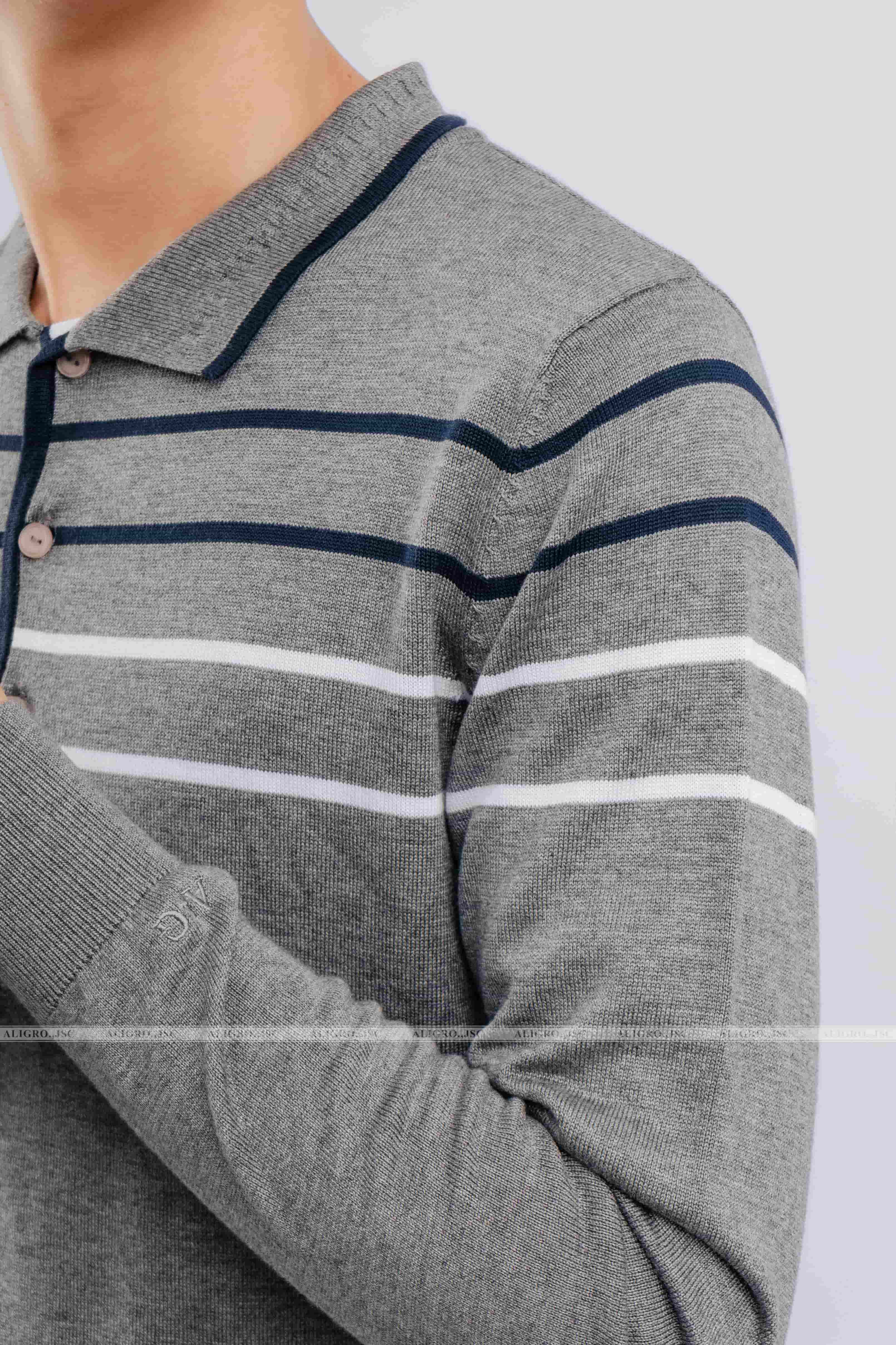 Áo len cổ bẻ dài tay ALEND036 - màu xám