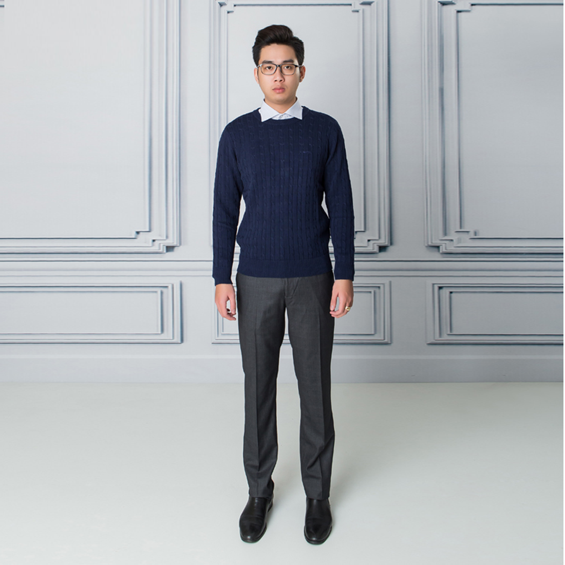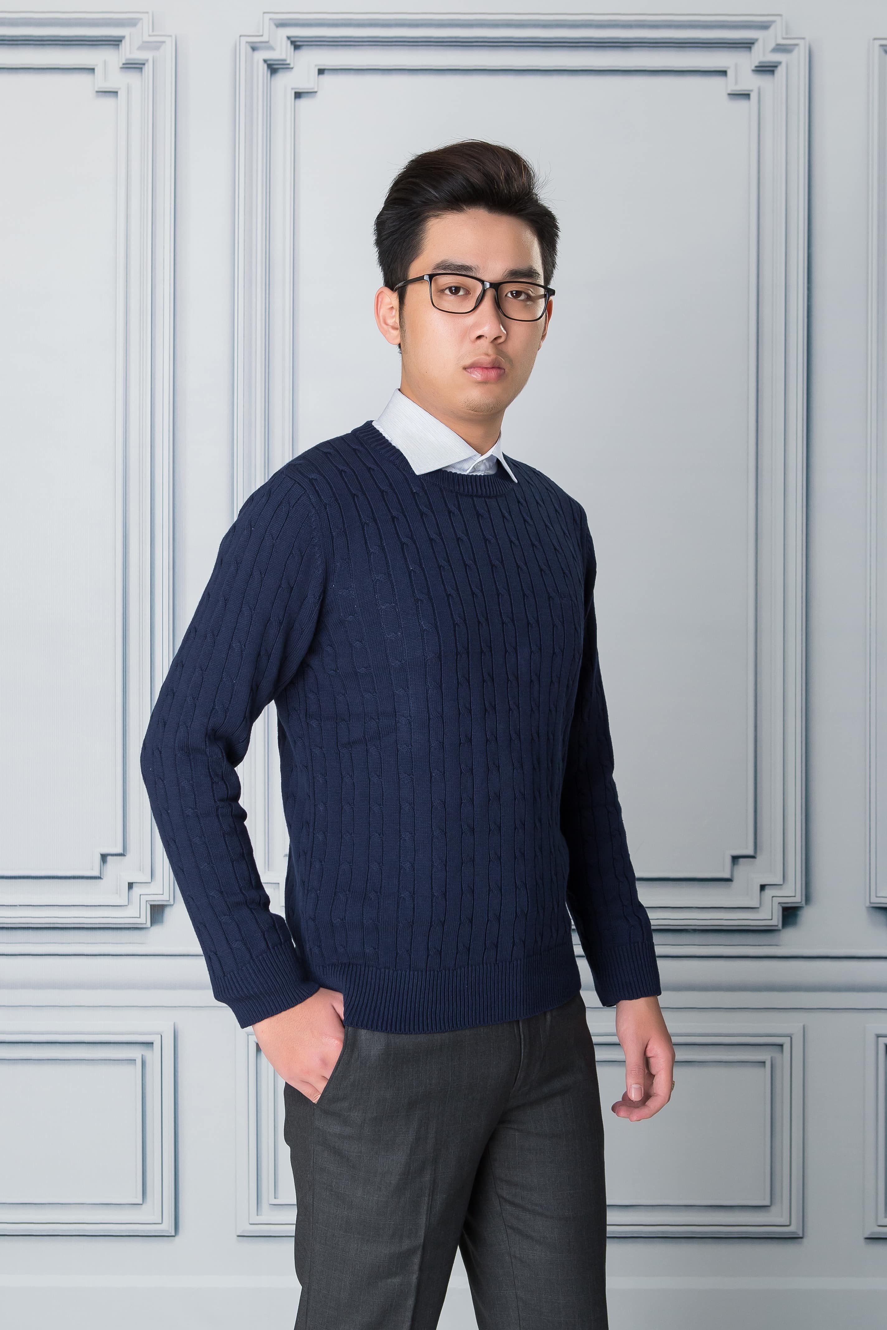 Áo len thừng dài tay ALEND029 - màu xanh than