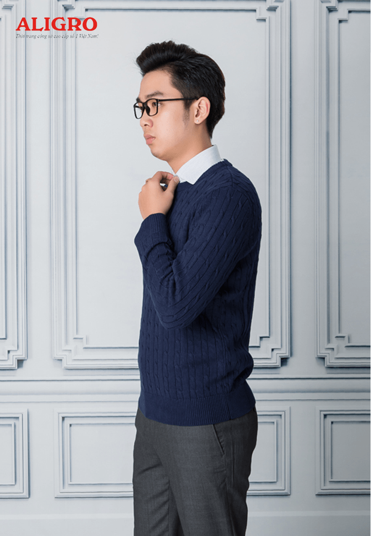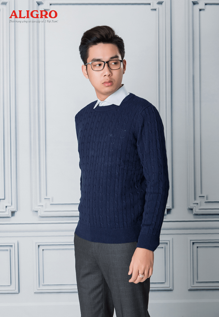 Áo len nam Aligro ALEND029 cổ tròn màu Navy được may từ chất liệu len mềm nhẹ, không bai không xù, giữ ấm nhưng vẫn thoáng khí, mang đến cho phái mạnh sự thoải mái tối đa.