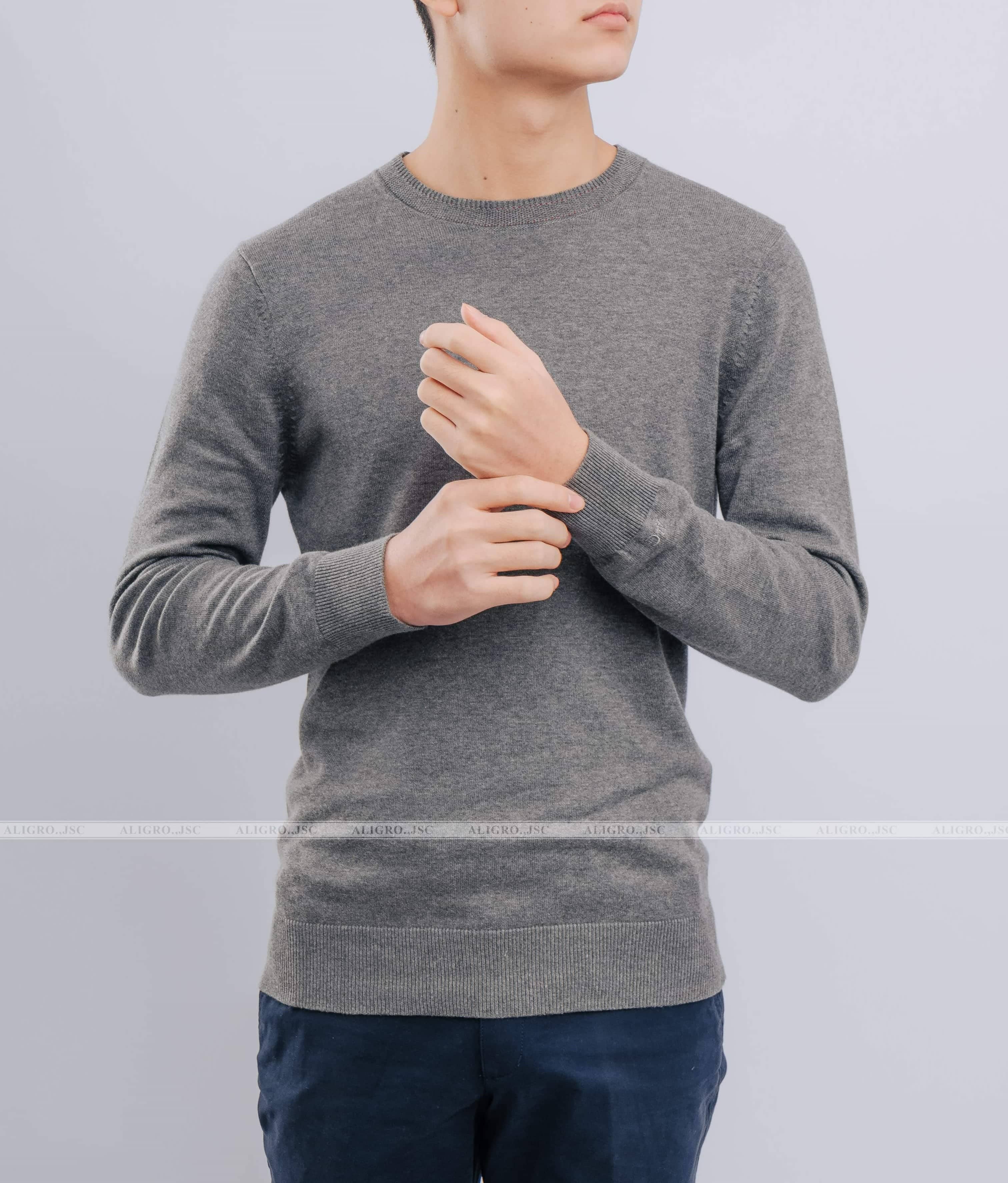 Áo len dài tay cổ tròn Alend053 - màu xám đậm