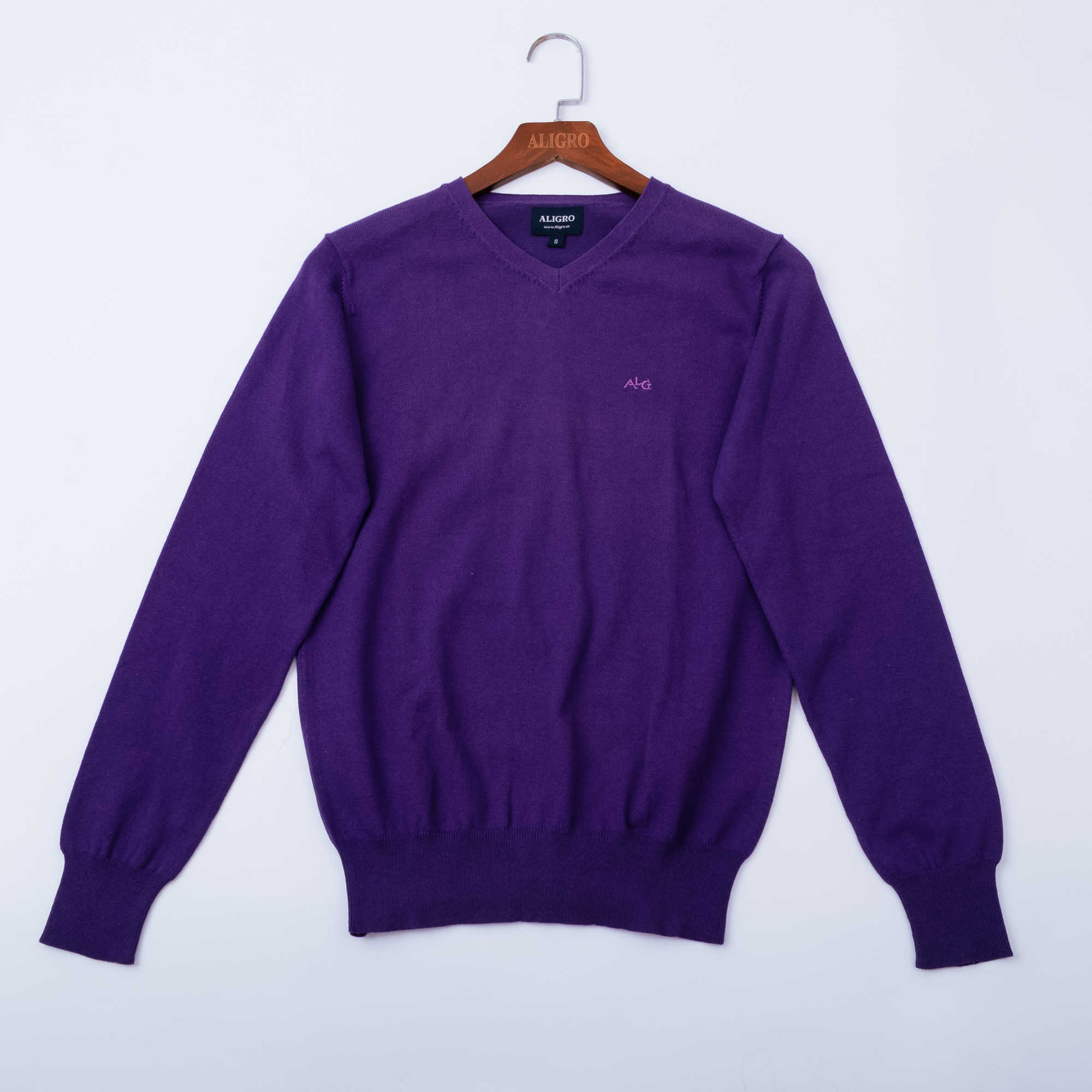 Áo len nam tay dài cổ tim màu tím thương hiệu thời trang Aligro được may từ chất liệu vải len mềm mịn, không bai không xù, thiết kế đơn giản giúp bạn dễ dàng phối đồ và mang đến cho phái mạnh phong cách trẻ trung, nam tính.
