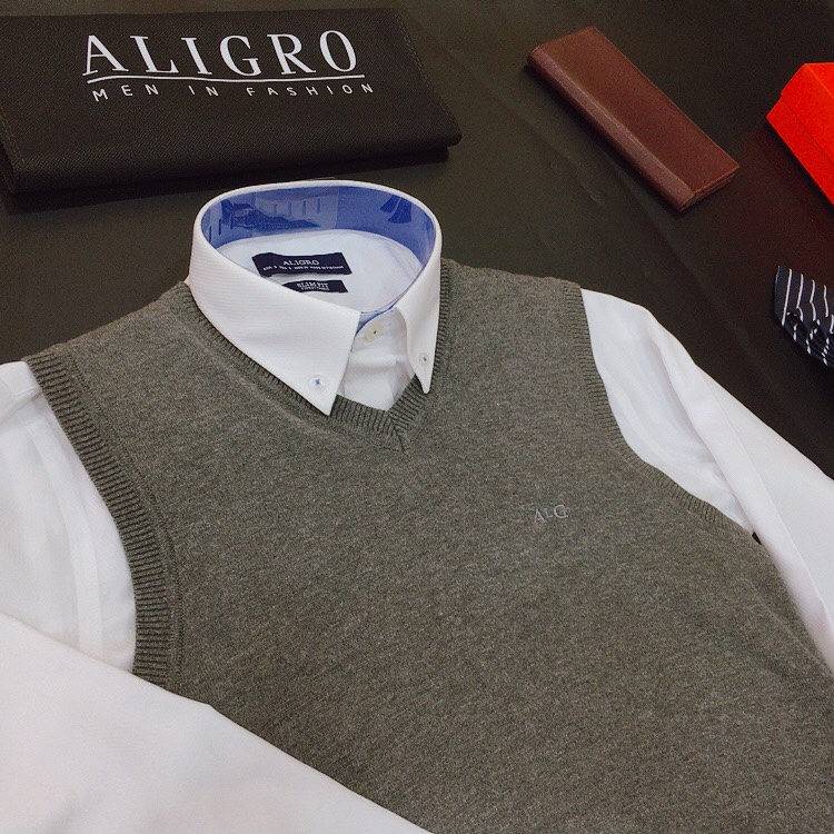 Áo len gile nam Aligro ALENGL011 xám đậm