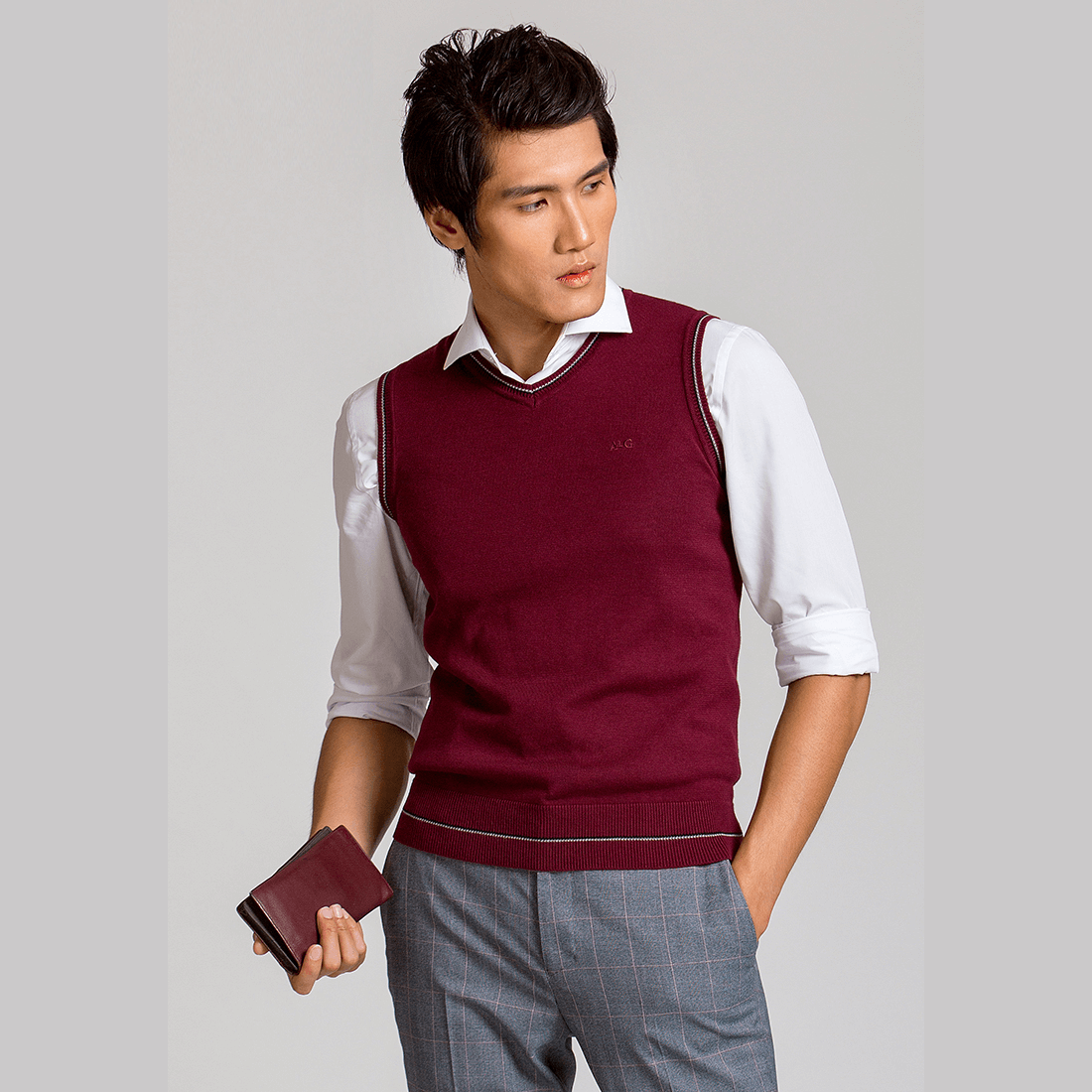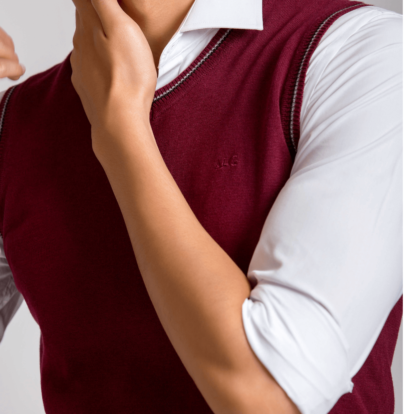 Áo len gile ALENGL015 màu đỏ đô kẻ viền