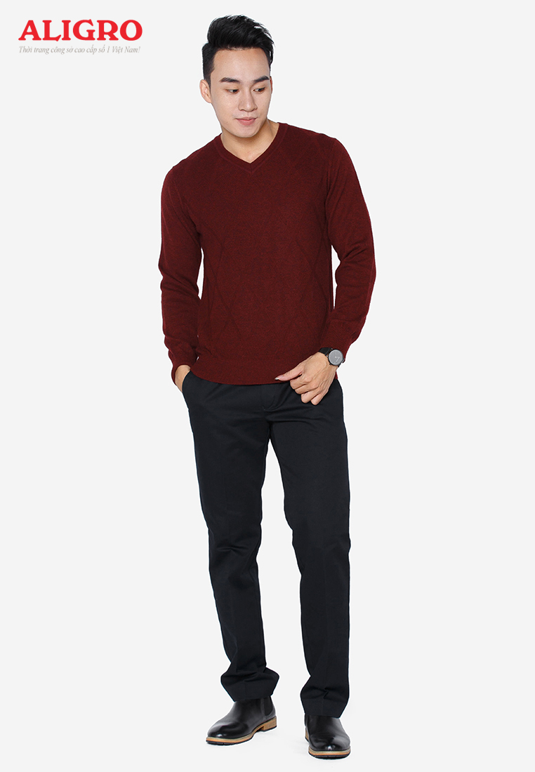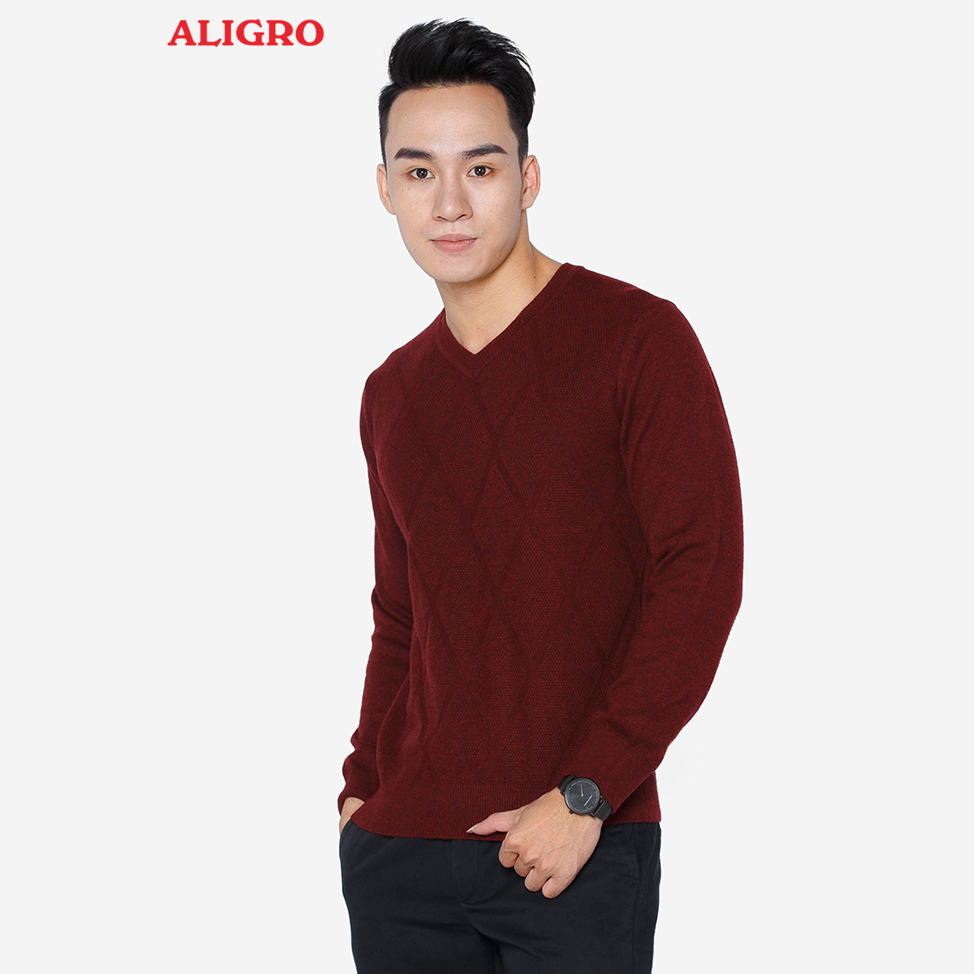 Áo len nam Aligro ALEND019 cổ tim đỏ đô được may từ chất liệu lông cừu pha lông dê cao cấp, mềm nhẹ, không bai không xù, giữ ấm nhưng vẫn thoáng khí, mang đến cho phái mạnh sự thoải mái tối đa.