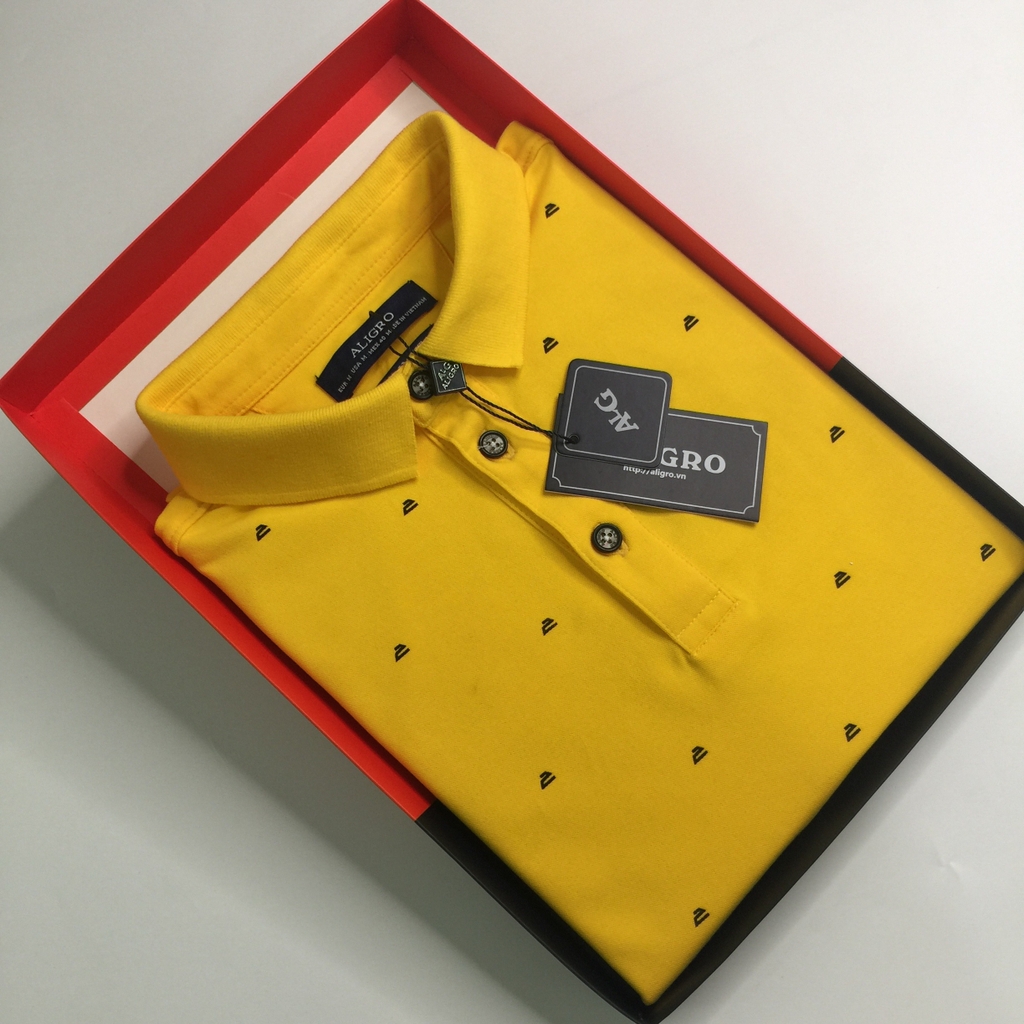 Áo polo nam ngắn tay cao cấp Aligro ALGPLO64 chất liệu pirma cotton form slimfit màu vàng in hoạ tiết bàn là