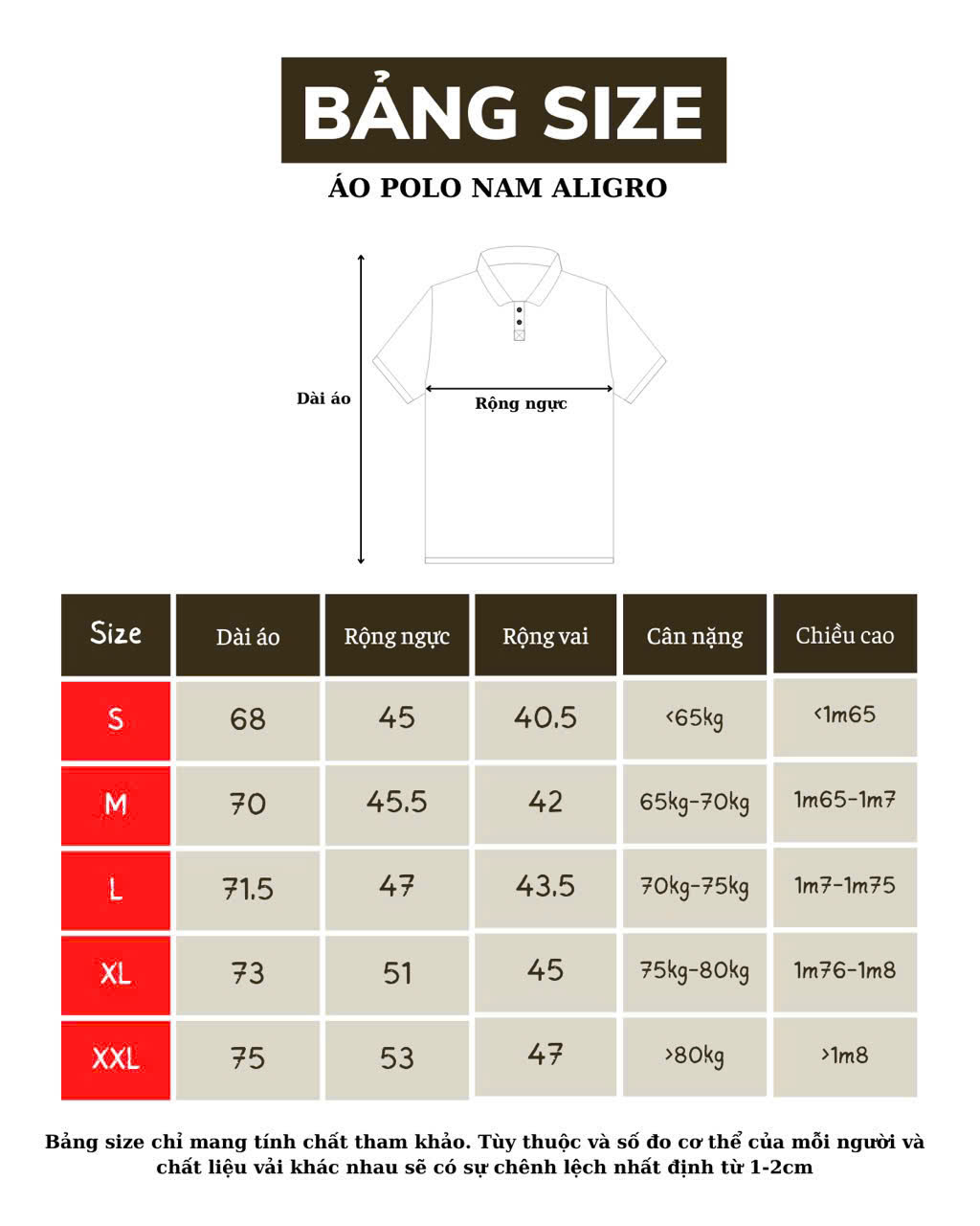 ✔️ HƯỚNG DẪN CHỌN SIZE Áo polo golf nam Aligro cổ bẻ