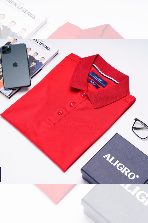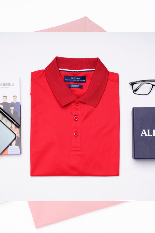 Áo polo nam ngắn tay cao cấp Aligro APLOUA005 chất liệu vải coolmax form SLIMFIT màu đỏ