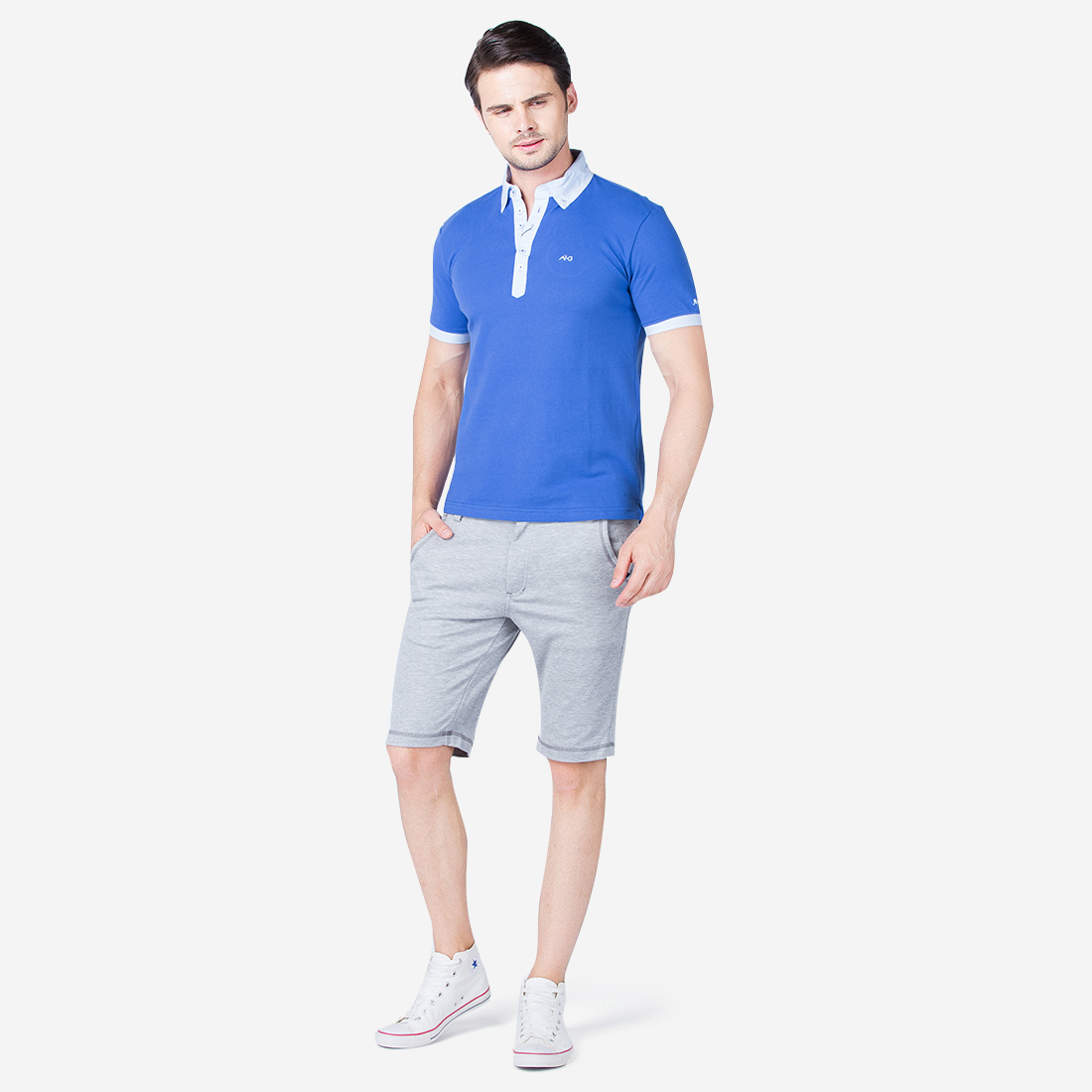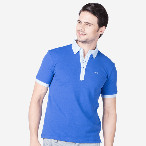 Áo polo nam cao cấp Aligro ALGPLO.7 chất liệu 100% cotton form SLIMFIT màu xanh dương phối trắng