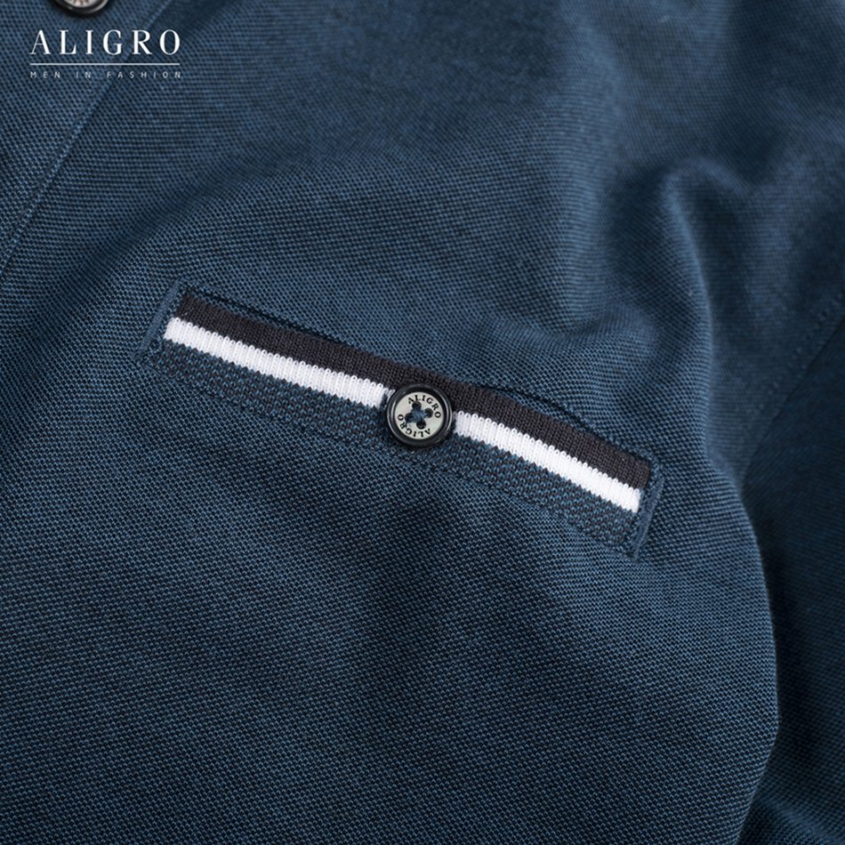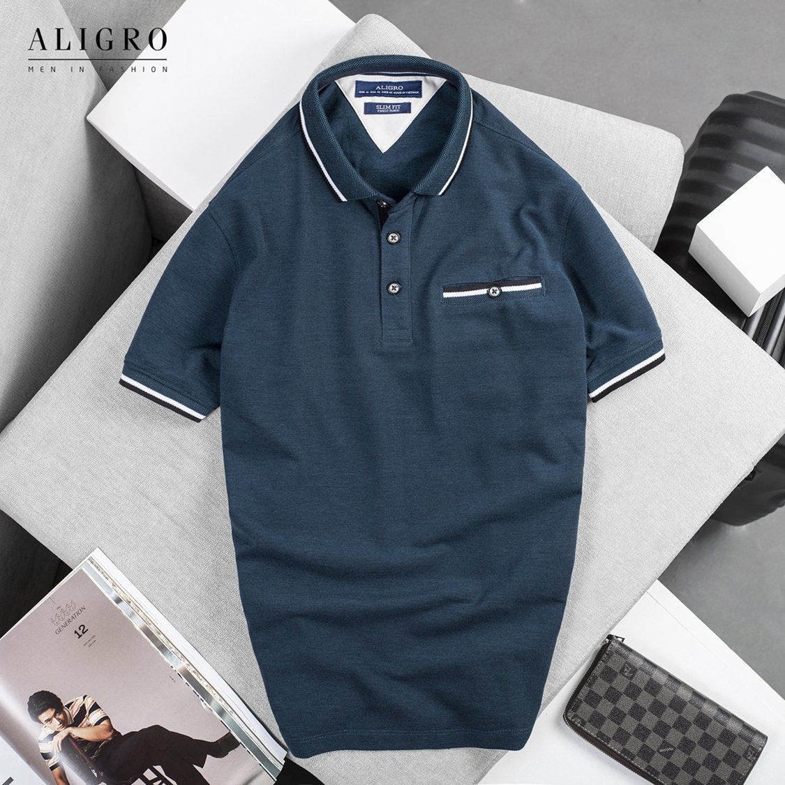 Áo polo nam ngắn tay Aligro cao cấp ALGPLO39 vải CVC cao cấp dáng slimfit có túi ngực màu xanh cổ vịt