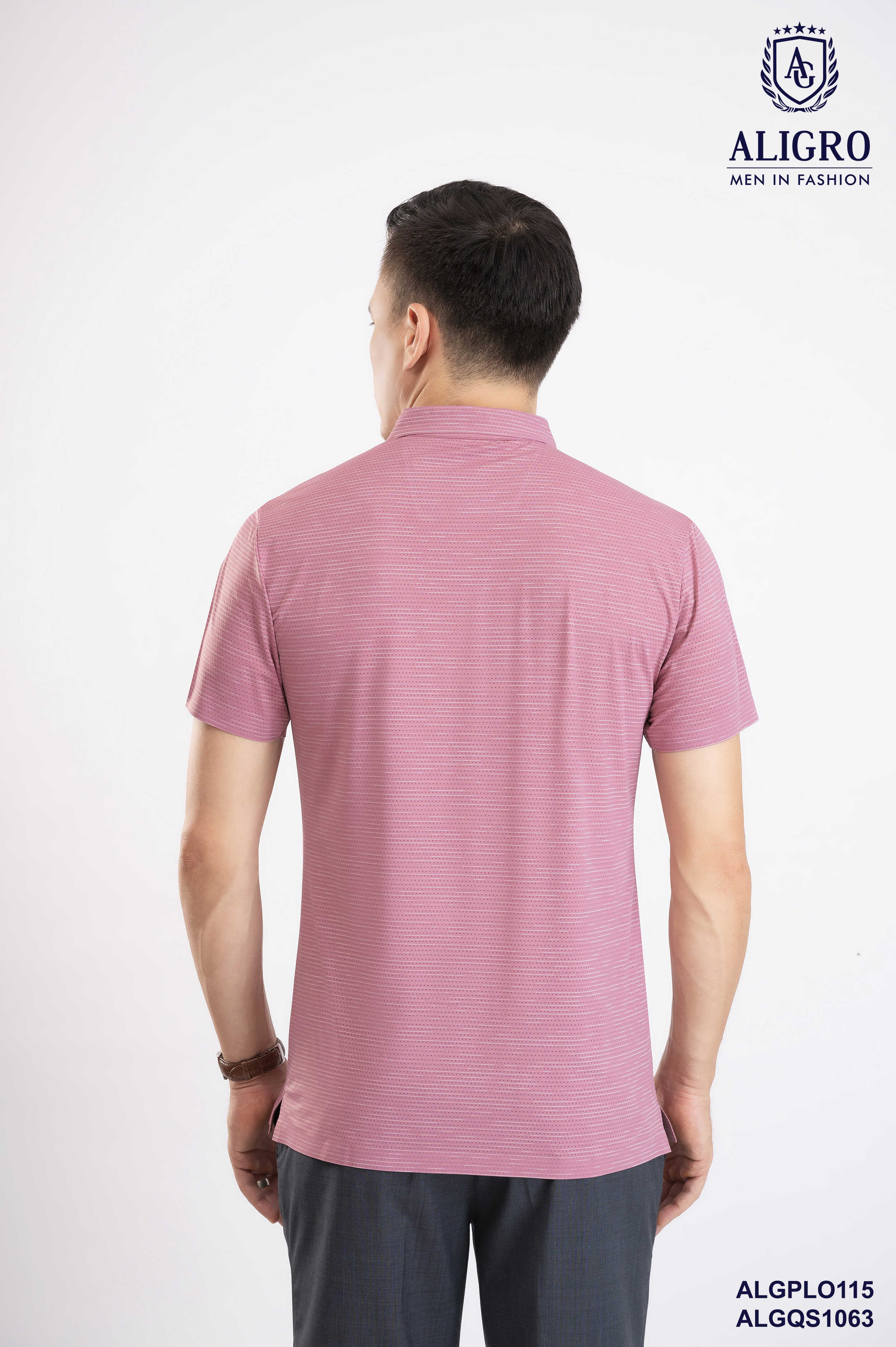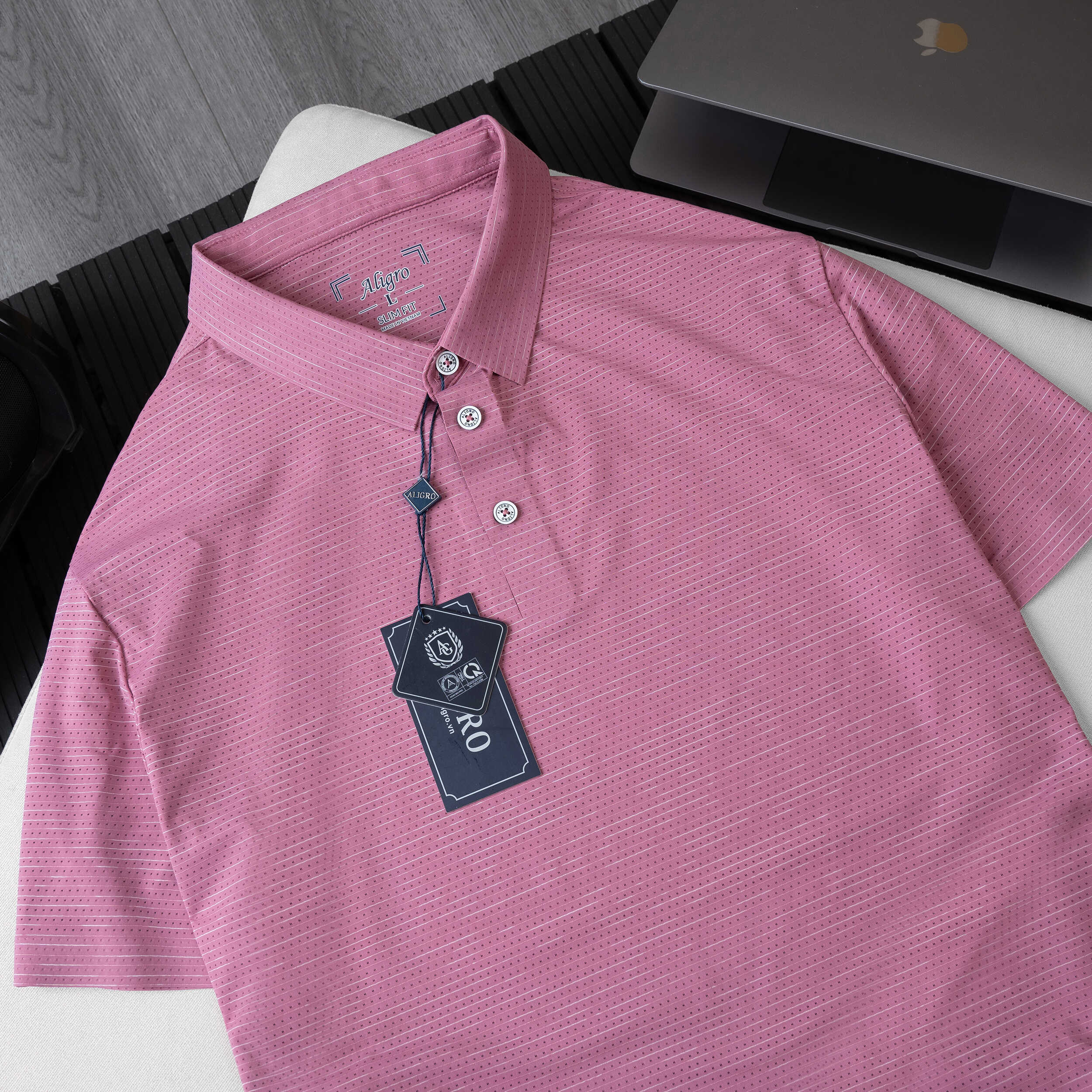 Áo Polo golf cao cấp Aligro ALGPLO115 công nghệ Seamless - không đường may form SLIMFIT kẻ ngang màu vỏ đỗ
