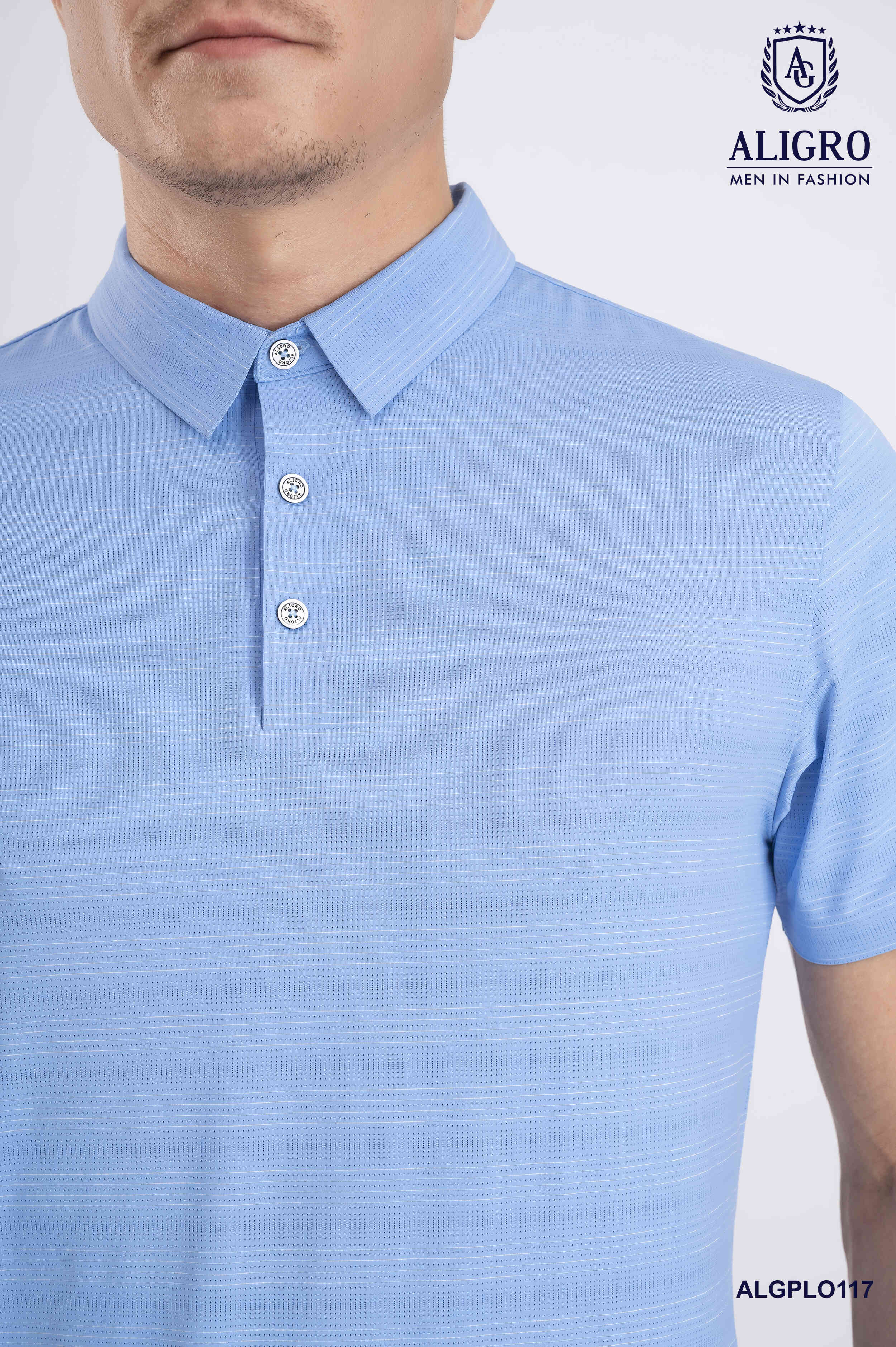 Áo Polo golf cao cấp Aligro ALGPLO117 công nghệ Seamless - không đường may form SLIMFIT kẻ ngang màu xanh blue