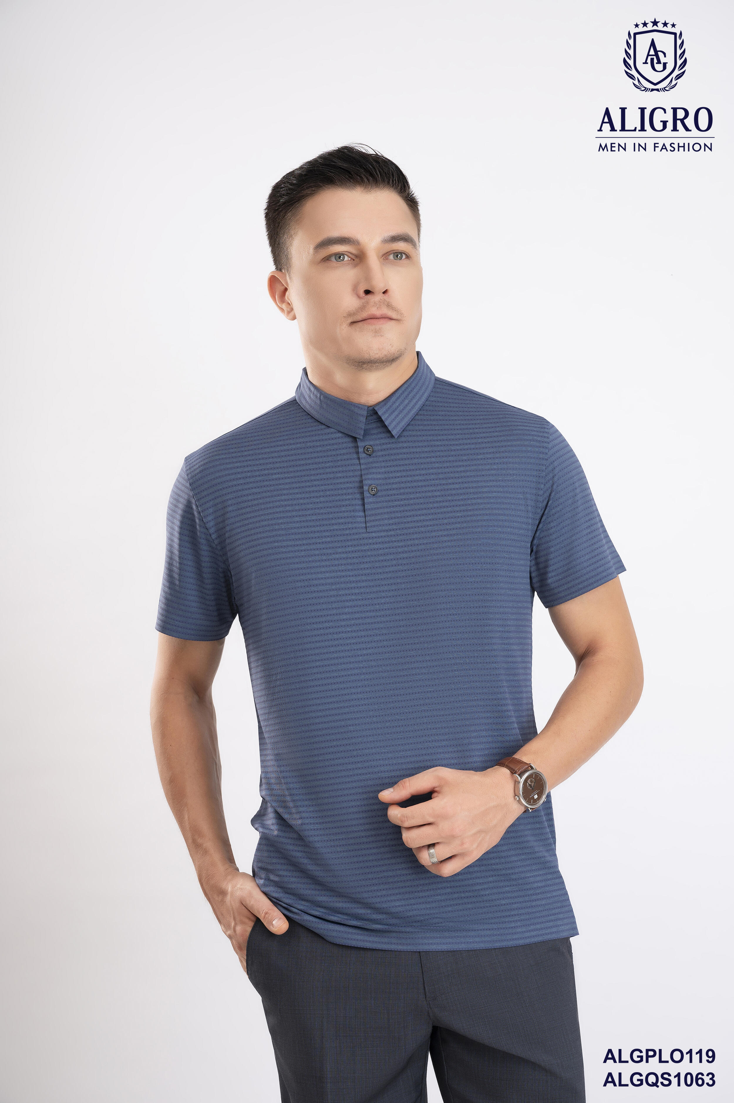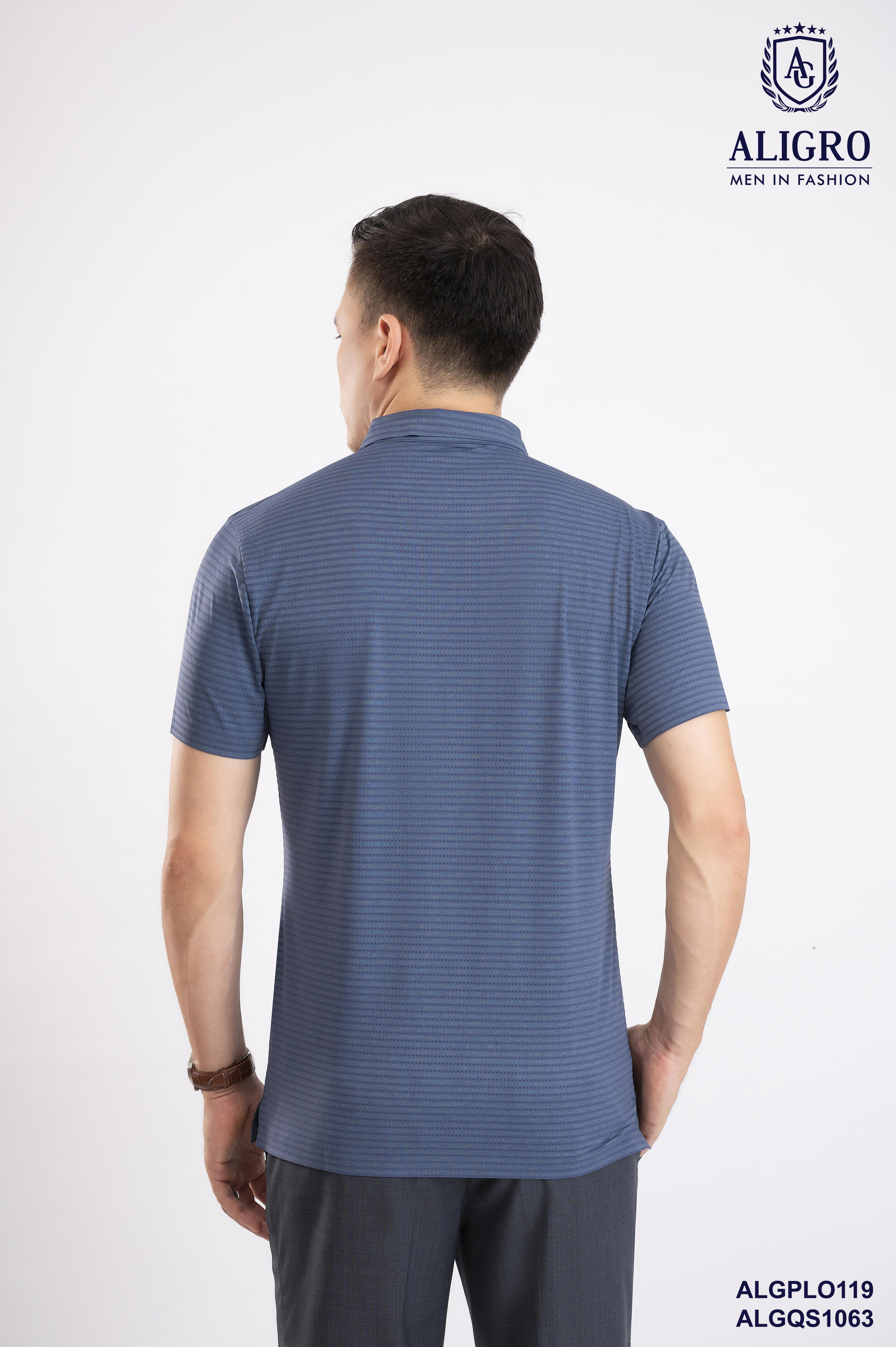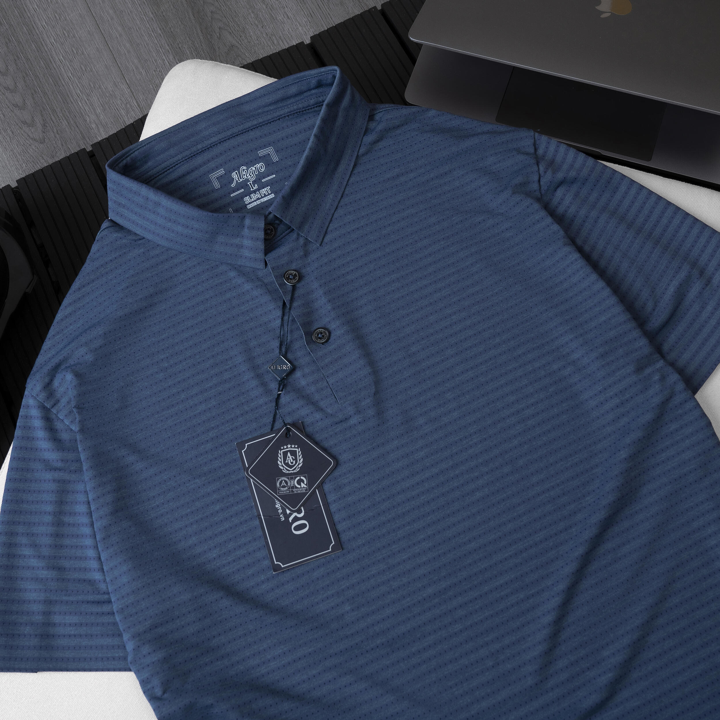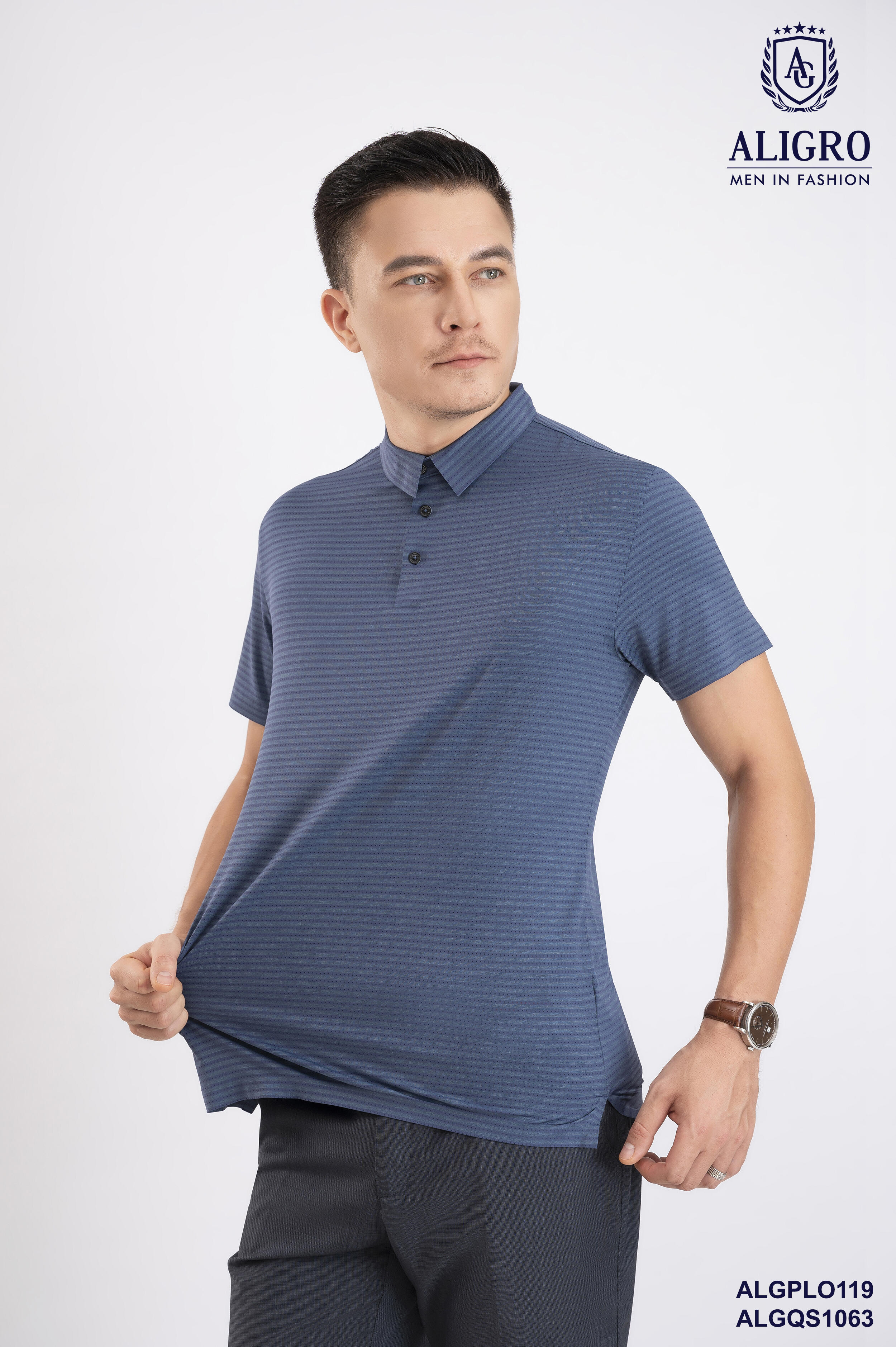 Áo Polo golf cao cấp Aligro ALGPLO119 công nghệ Seamless - không đường may form SLIMFIT màu xanh dệt kẻ ngang