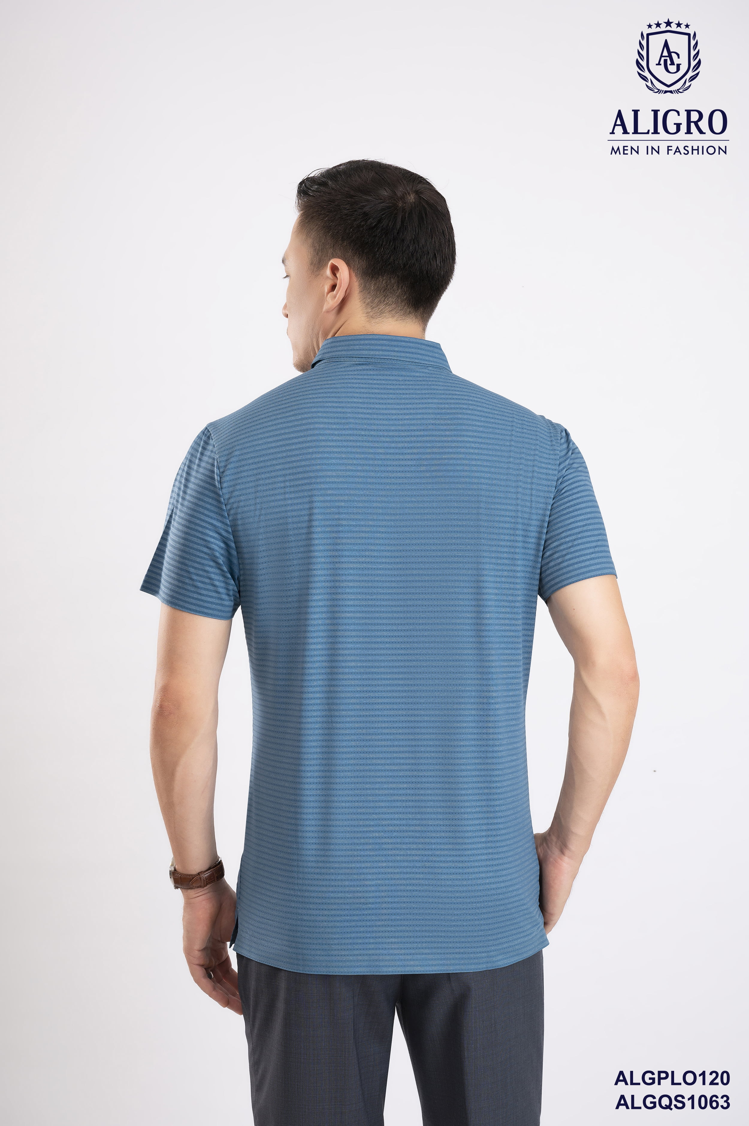 Áo Polo golf cao cấp Aligro ALGPLO120 công nghệ Seamless - không đường may form SLIMFIT xanh navy dệt kẻ ngang