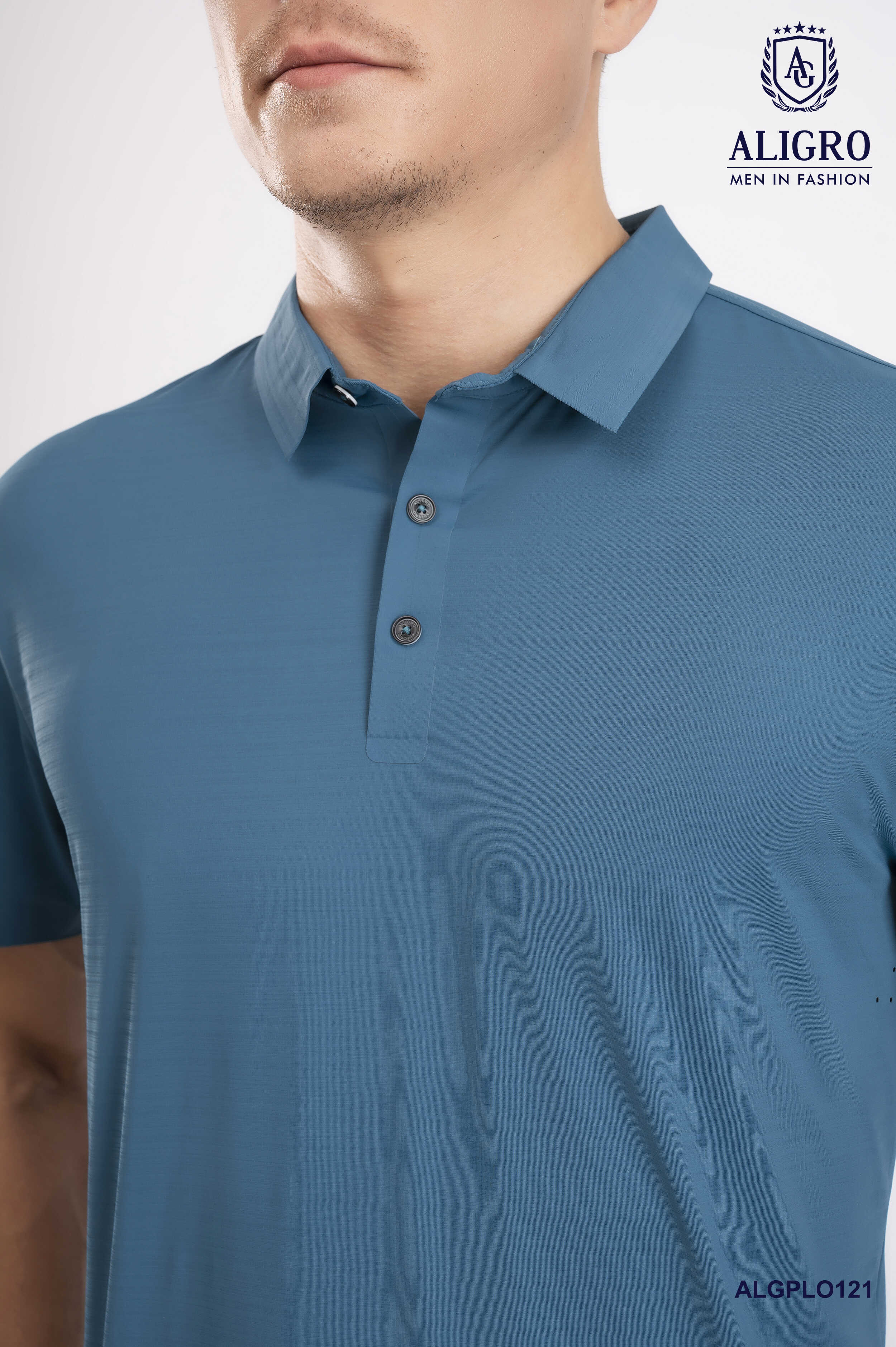Áo Polo golf cao cấp Aligro ALGPLO121 công nghệ Seamless - không đường may form SLIMFIT màu xanh đậm