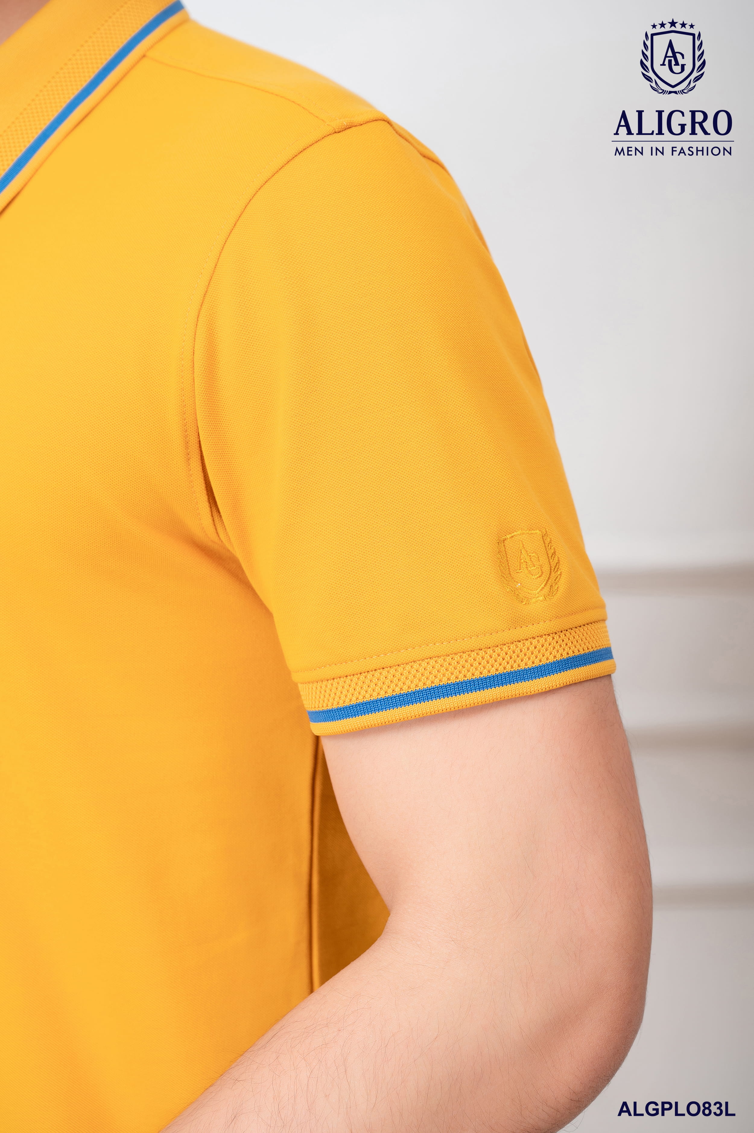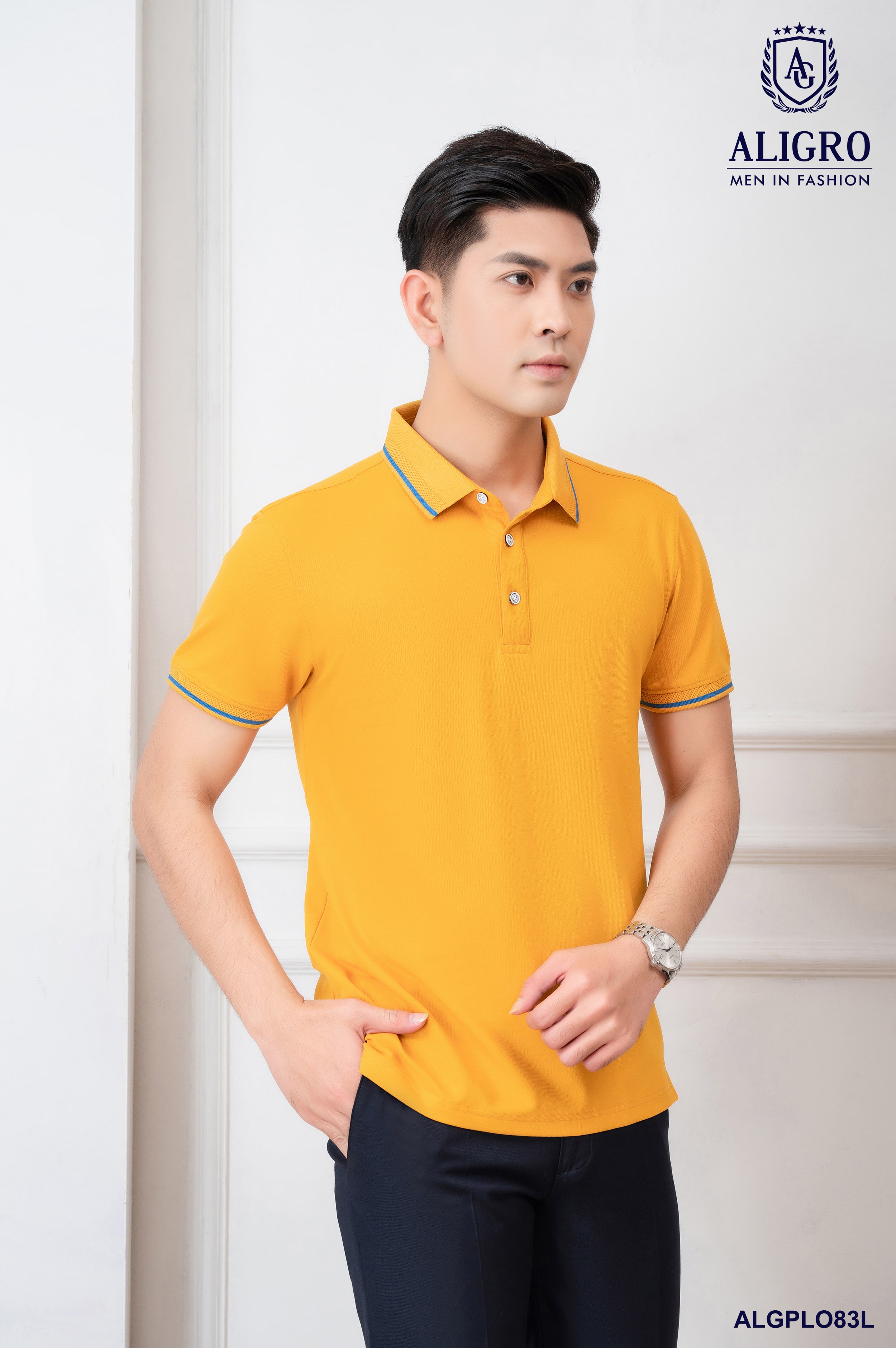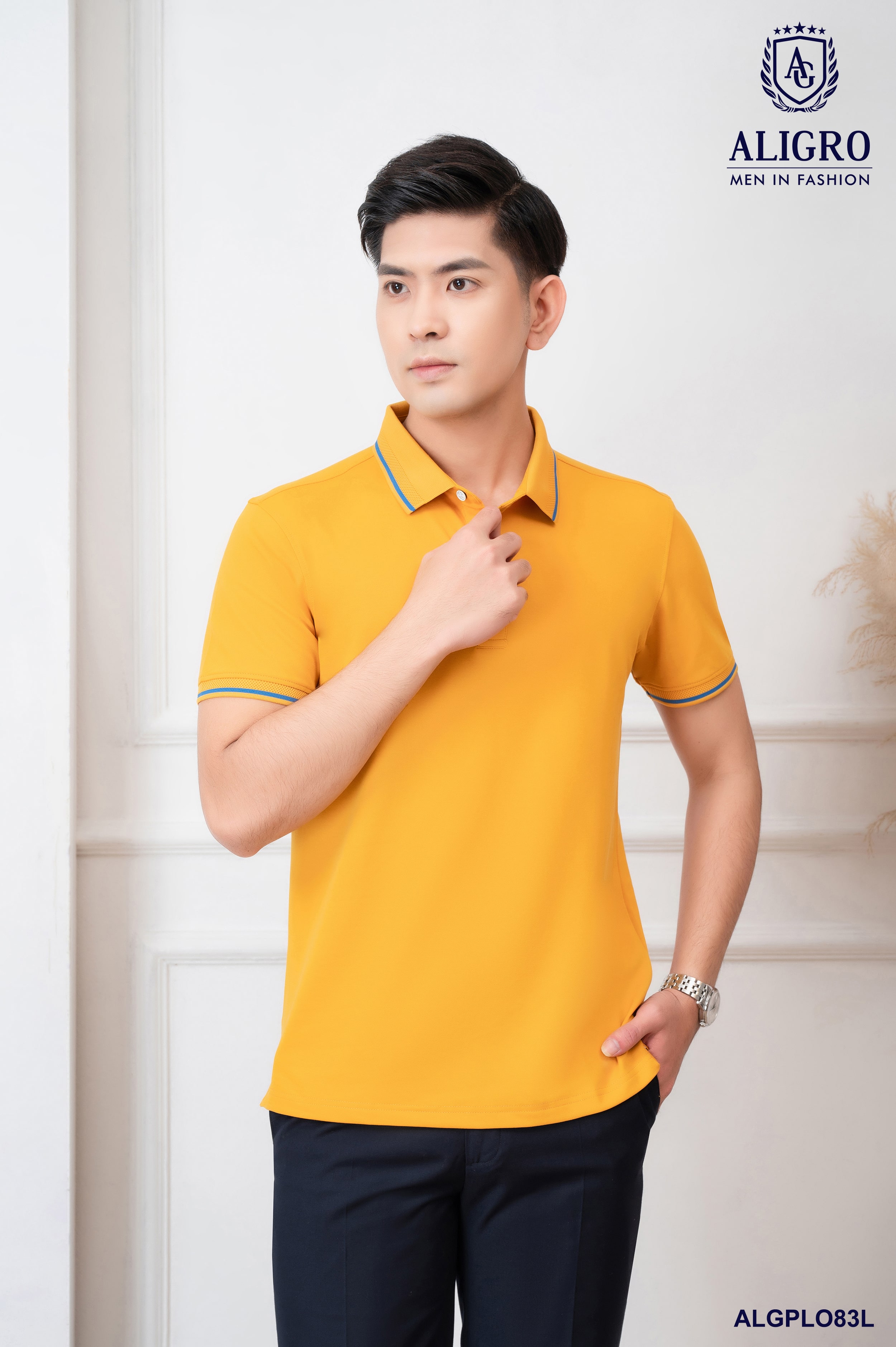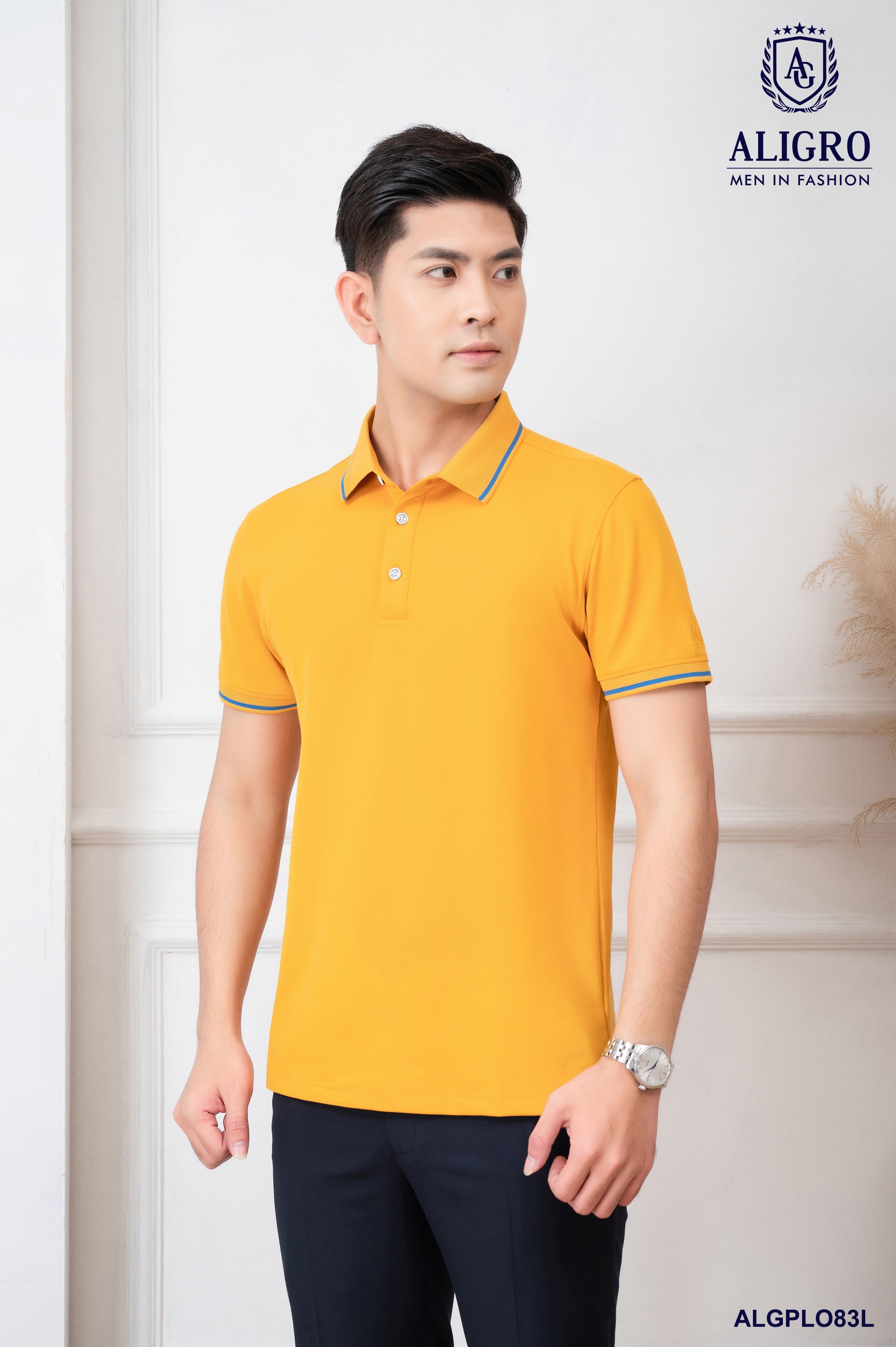 Áo polo nam ngắn tay cao cấp Aligro ALGPLO83 chất liệu pirma cotton form SLIMFIT màu vàng