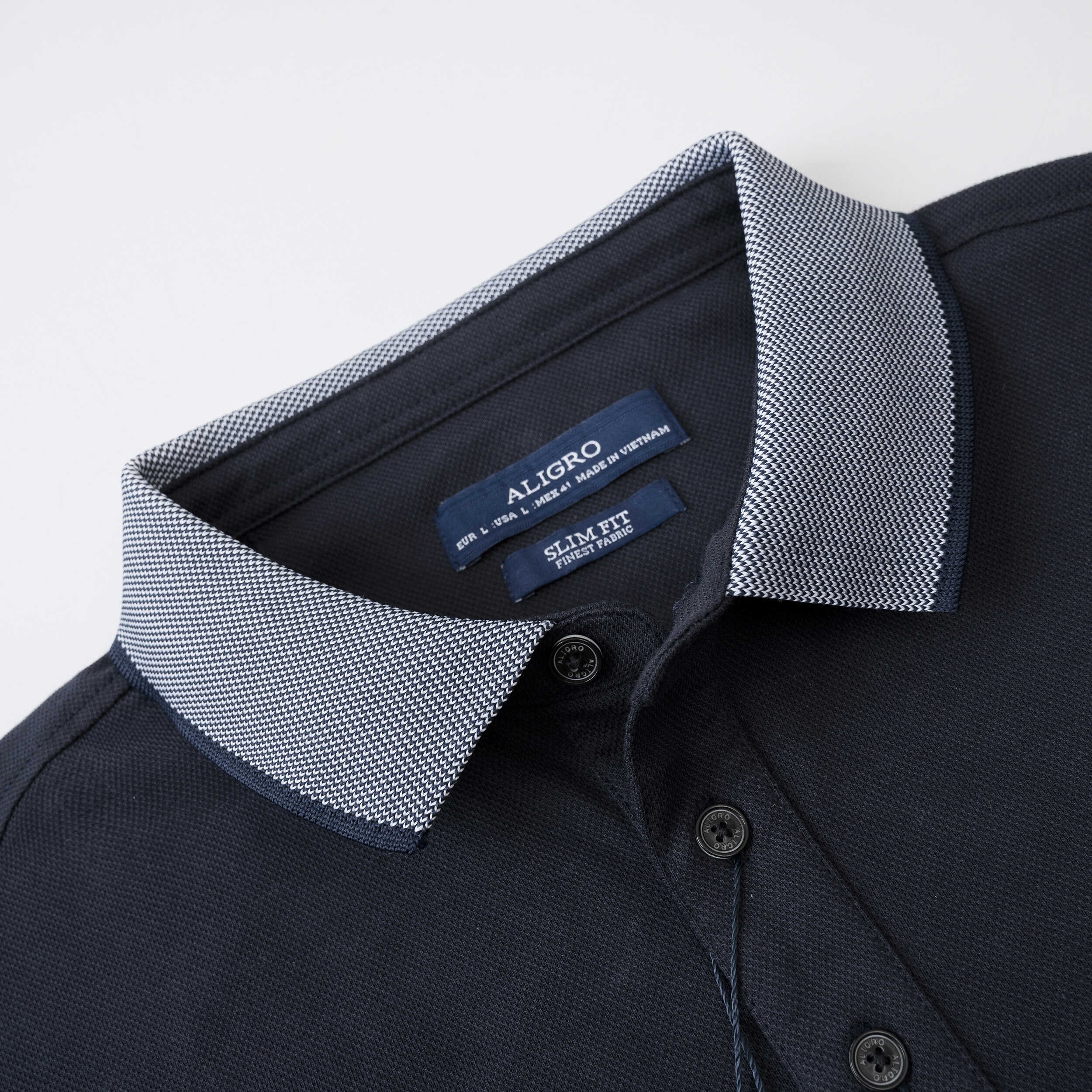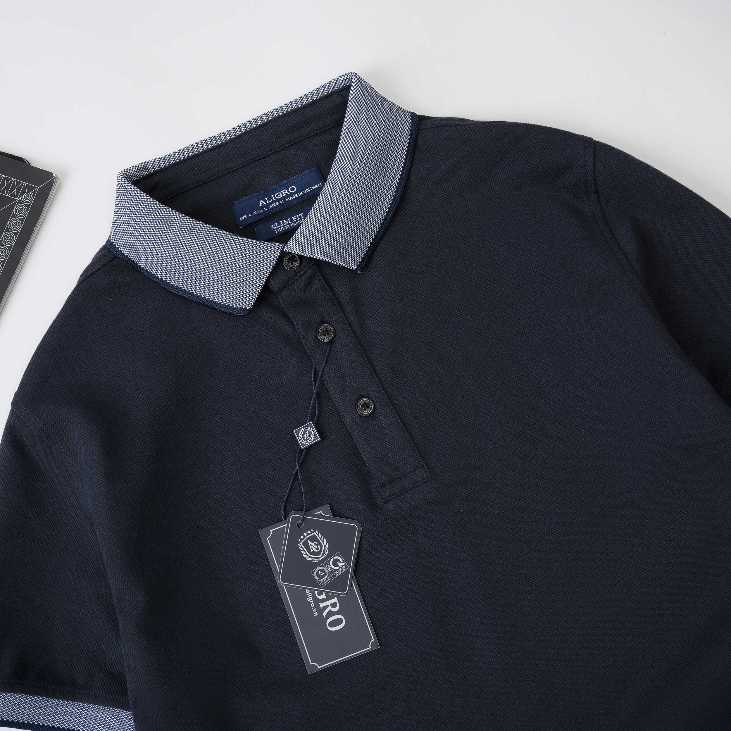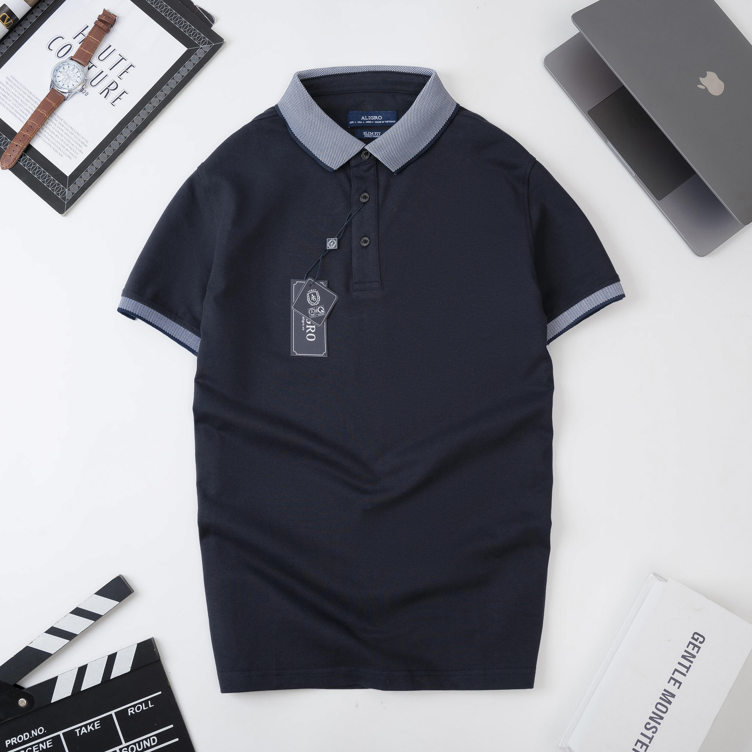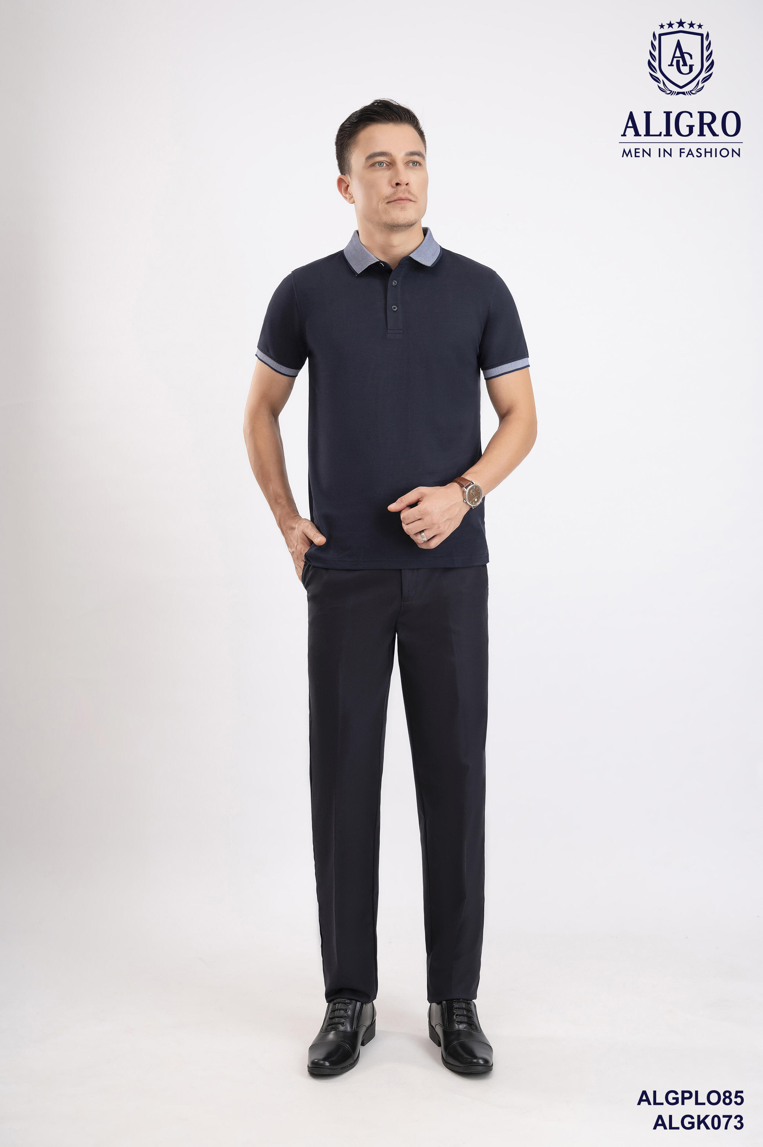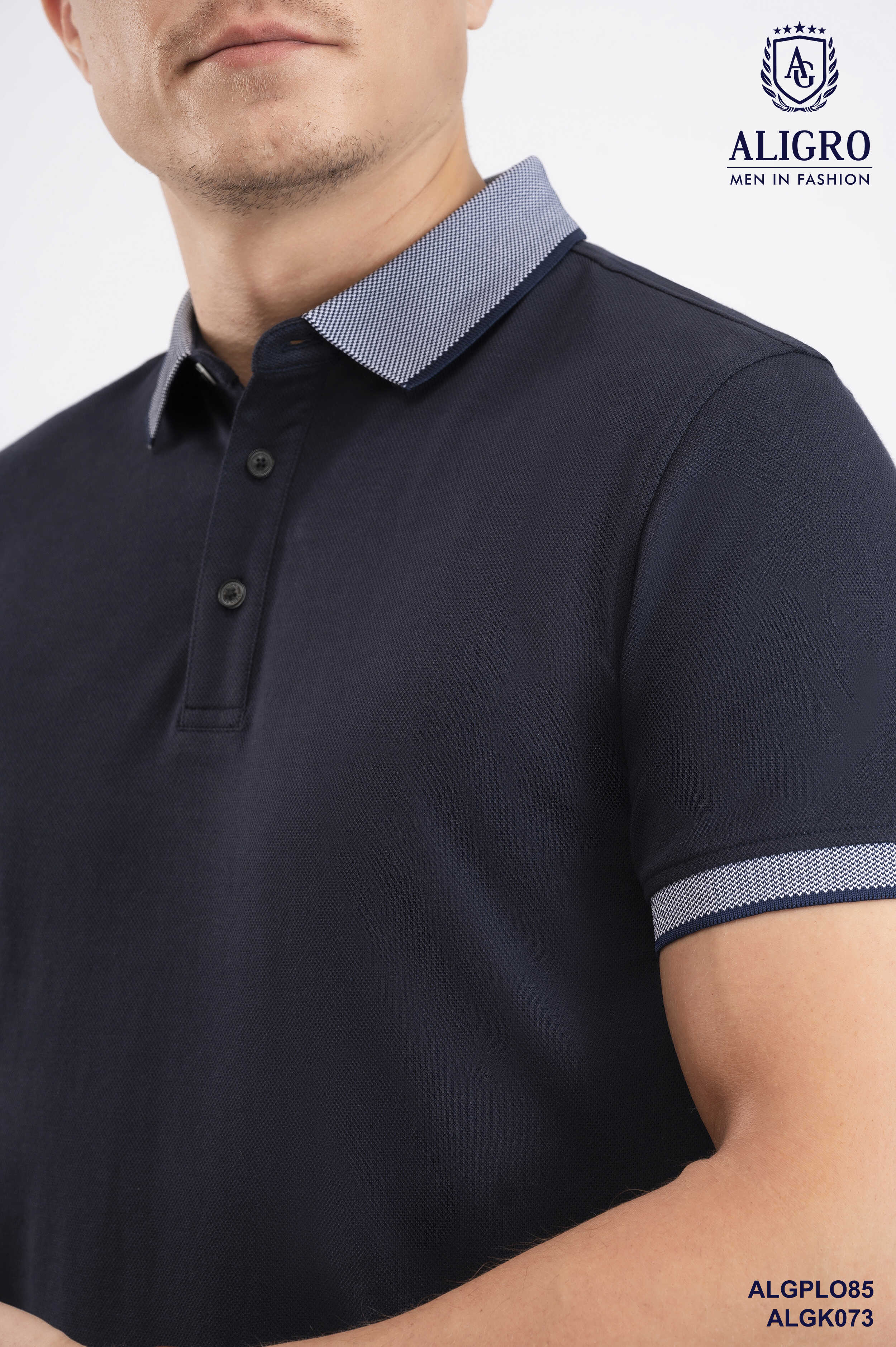 Áo polo nam ngắn tay cao cấp Aligro ALGPLO85 chất liệu 100% cotton form SLIMFIT màu xanh navy