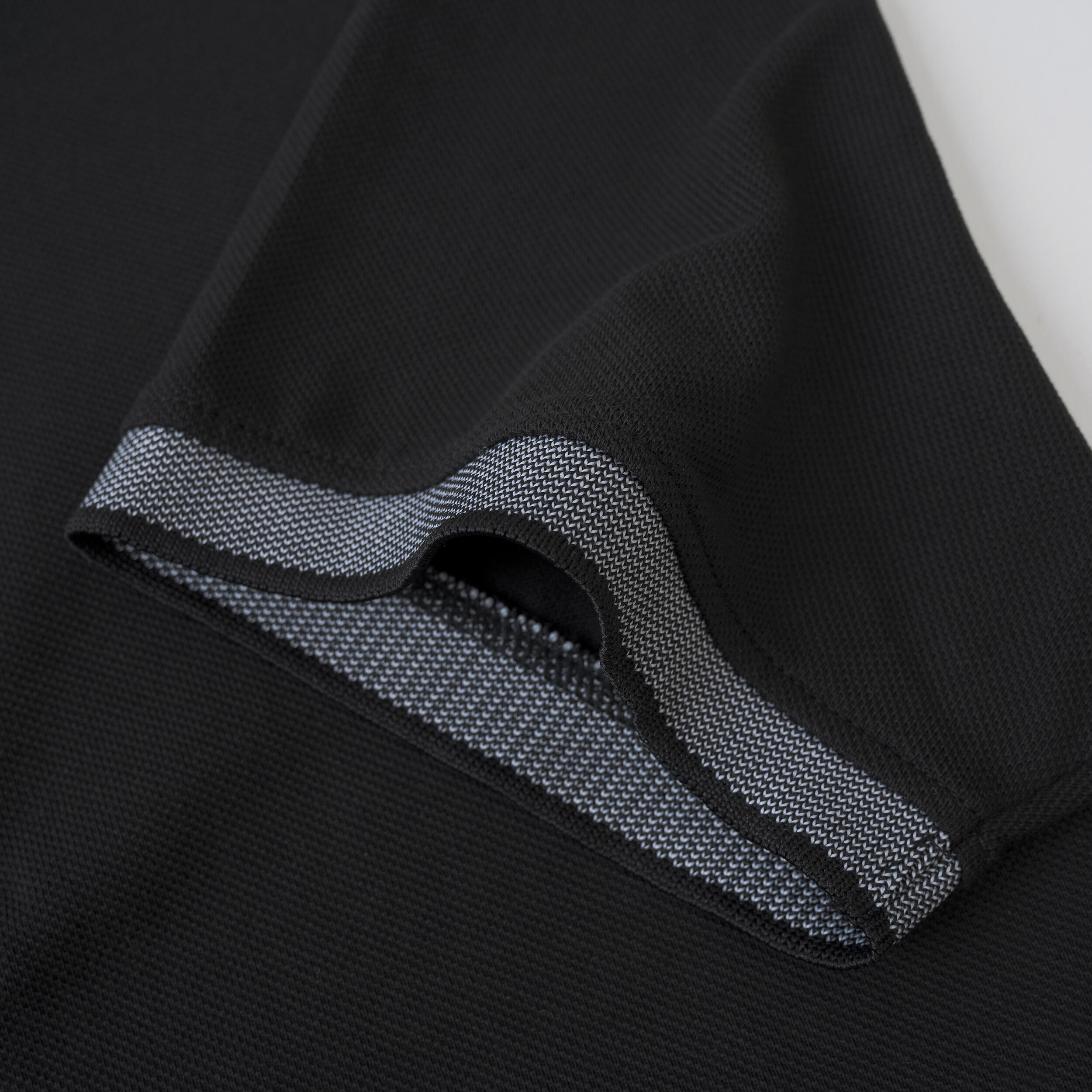 + Thiết kế hiện đại với cổ áo và tay áo bo dệt chỉn chu, gấu áo xẻ tà hai bên được hoàn thiện bằng dây dệt 3 màu độc đáo – chi tiết tạo điểm nhấn nổi bật cho tổng thể.