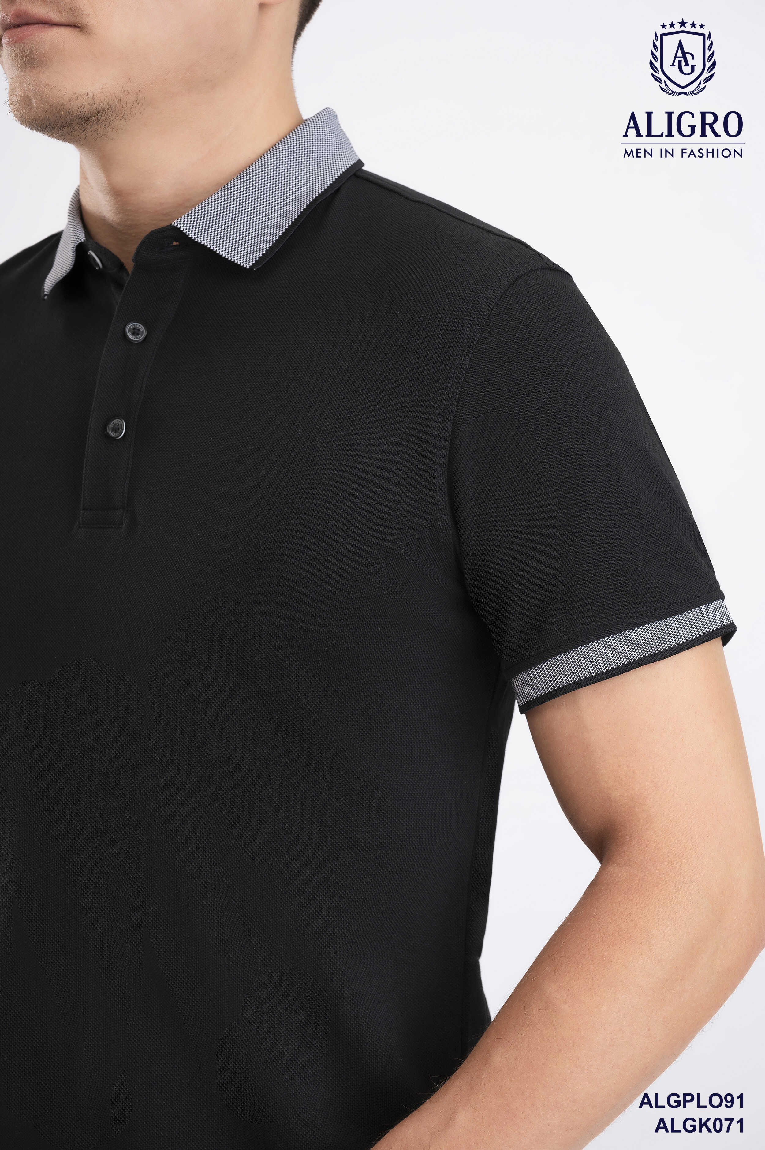 Áo polo nam ngắn tay cao cấp Aligro ALGPLO91 chất liệu 100% cotton form SLIMFIT màu đen