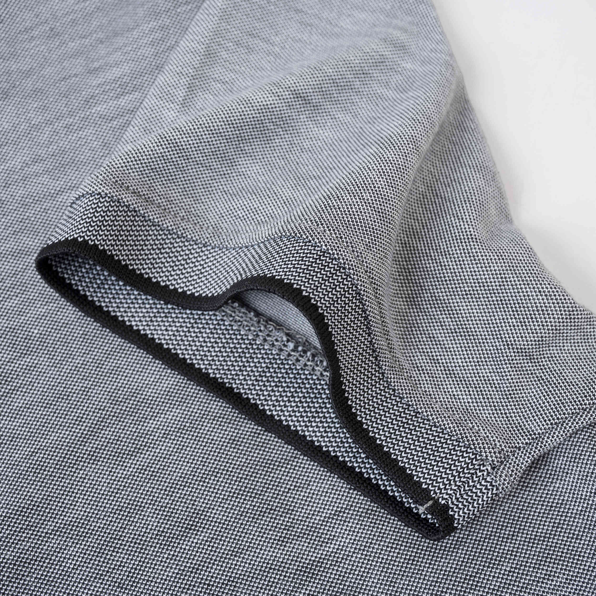 + Thiết kế hiện đại với cổ áo và tay áo bo dệt chỉn chu, gấu áo xẻ tà hai bên được hoàn thiện bằng dây dệt 3 màu độc đáo – chi tiết tạo điểm nhấn nổi bật cho tổng thể.