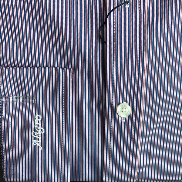 Áo sơ mi dài tay công sở cao cấp Aligro ALGS165 dáng Slimfit kẻ sọc cam - navy