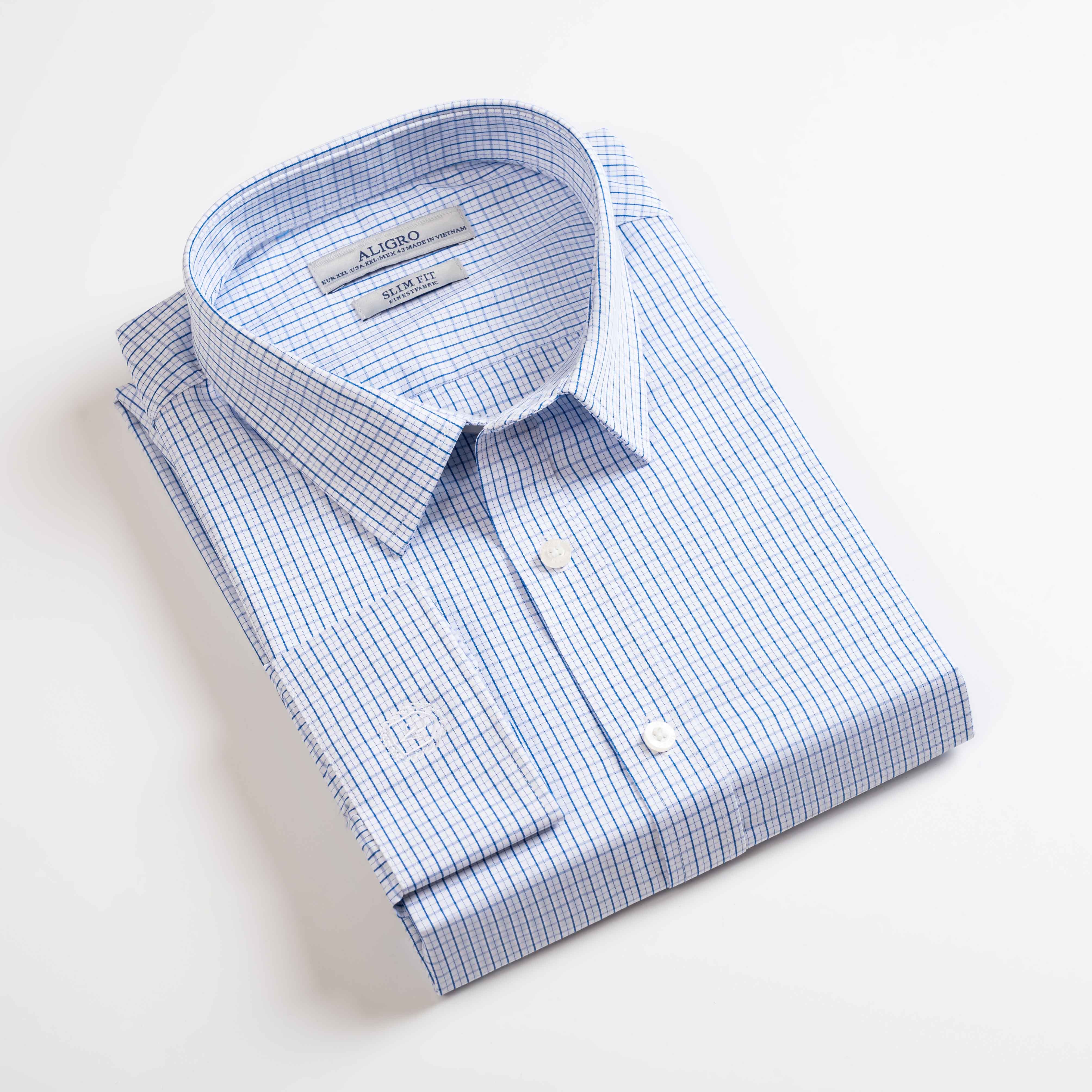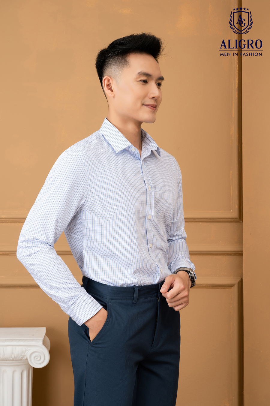 Áo sơ mi nam dài tay cao cấp Aligro ALGS220 chất liệu vải modal form SLIMFIT kẻ caro xanh