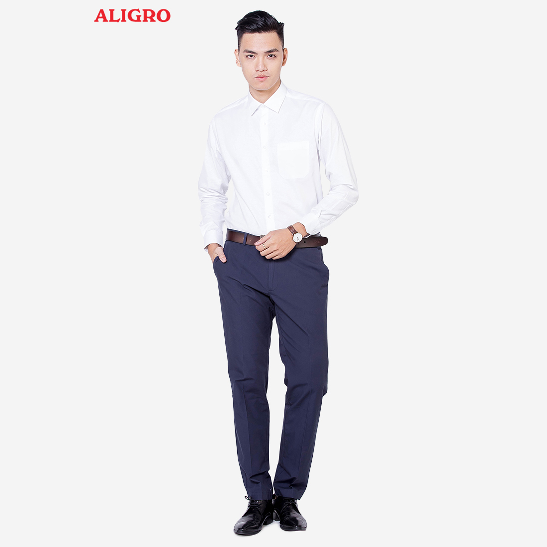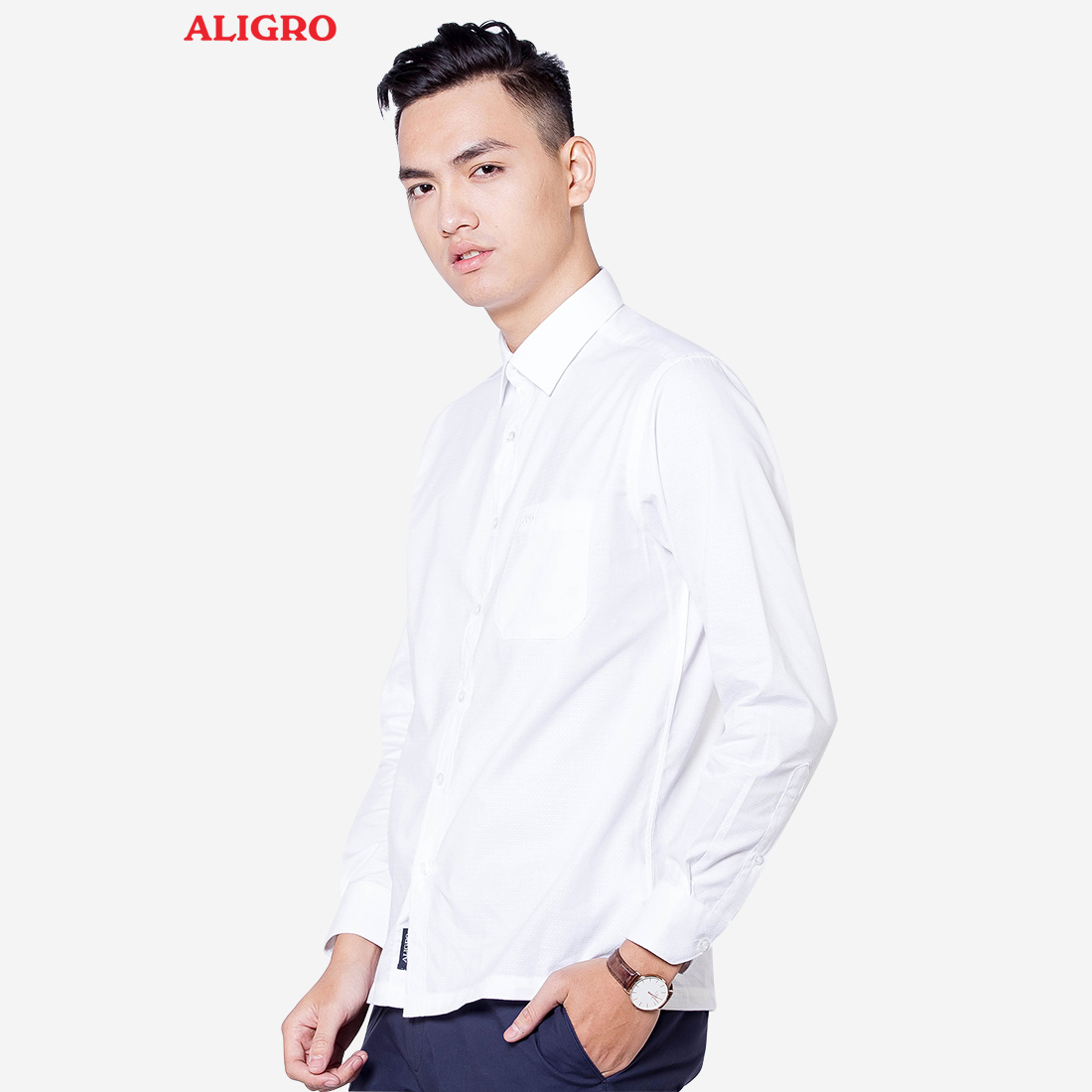 Áo sơ mi nam dài tay công sở cao cấp Aligro ALG1014 dáng Custom màu trắng