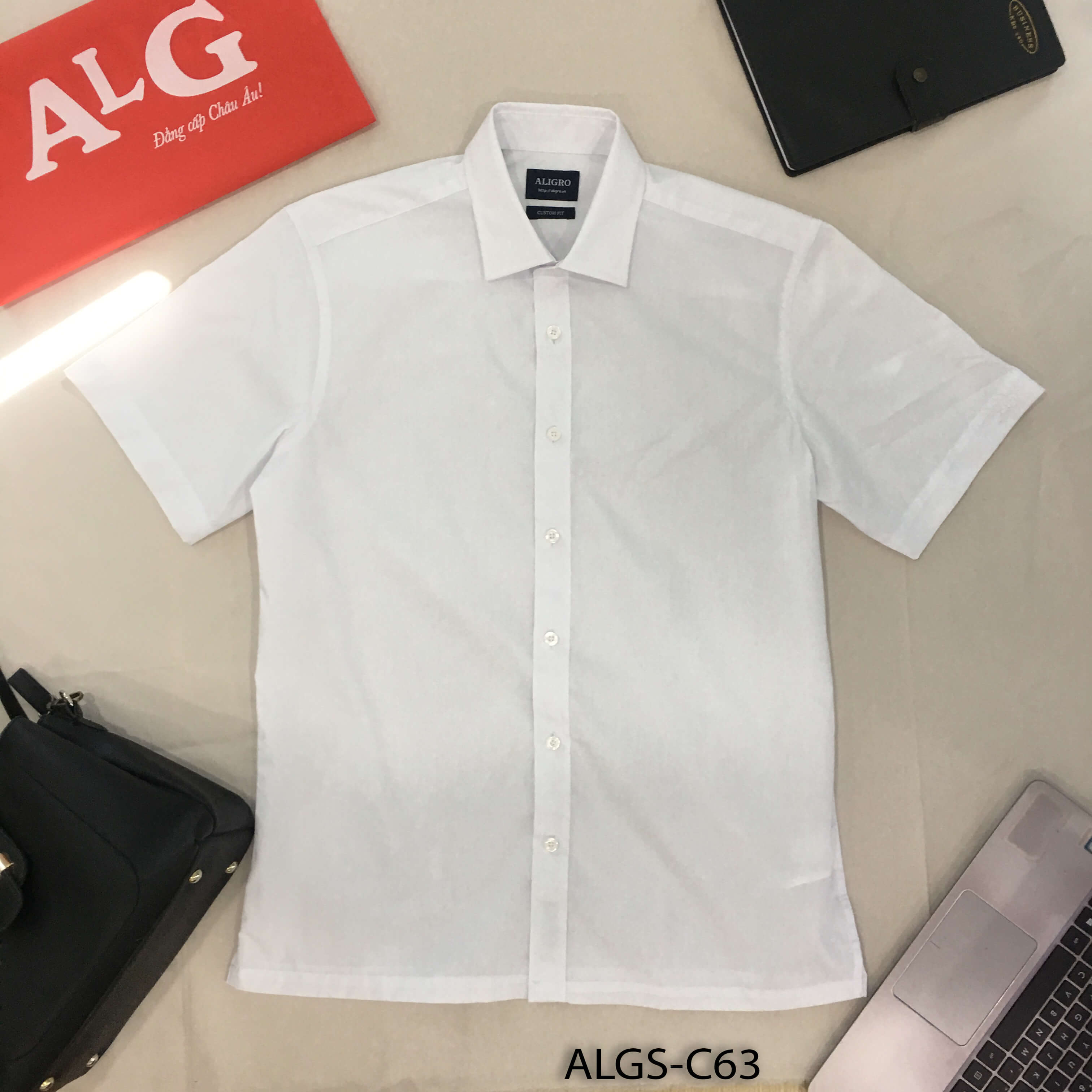 Áo sơ mi nam ngắn tay cao cấp Aligro ALGS-C63 vải cotton form SLIMFIT màu trắng