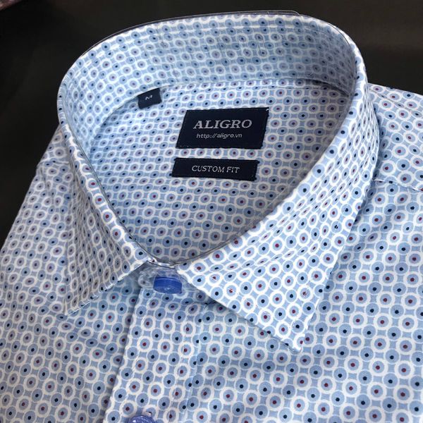 Áo sơ mi nam ngắn tay cao cấp Aligro ALGS-C68 vải cotton form Custom màu navy in chấm