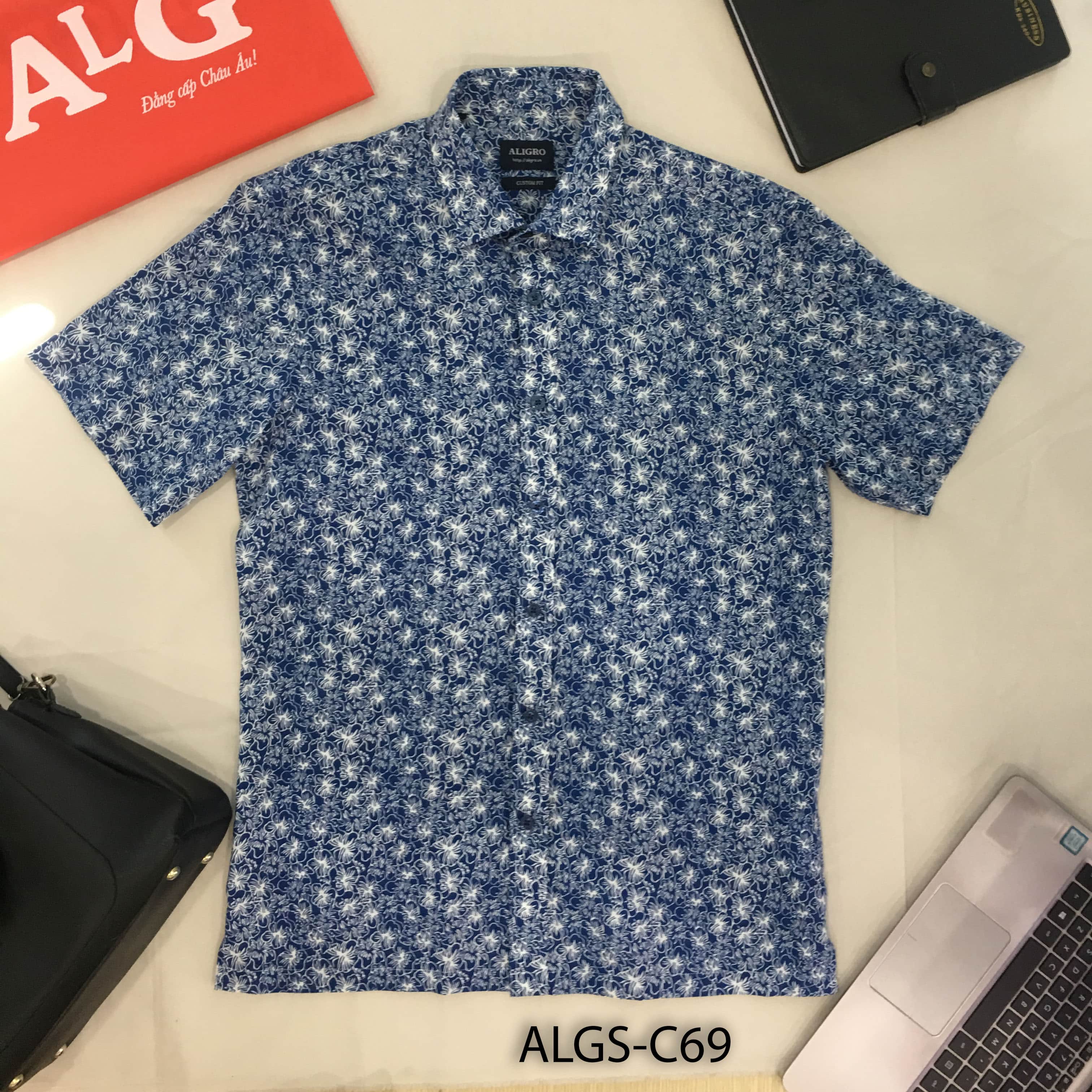 Áo sơ mi nam ngắn tay cao cấp Aligro ALGS-C69 vải cotton form SLIMFIT màu navy in hoa