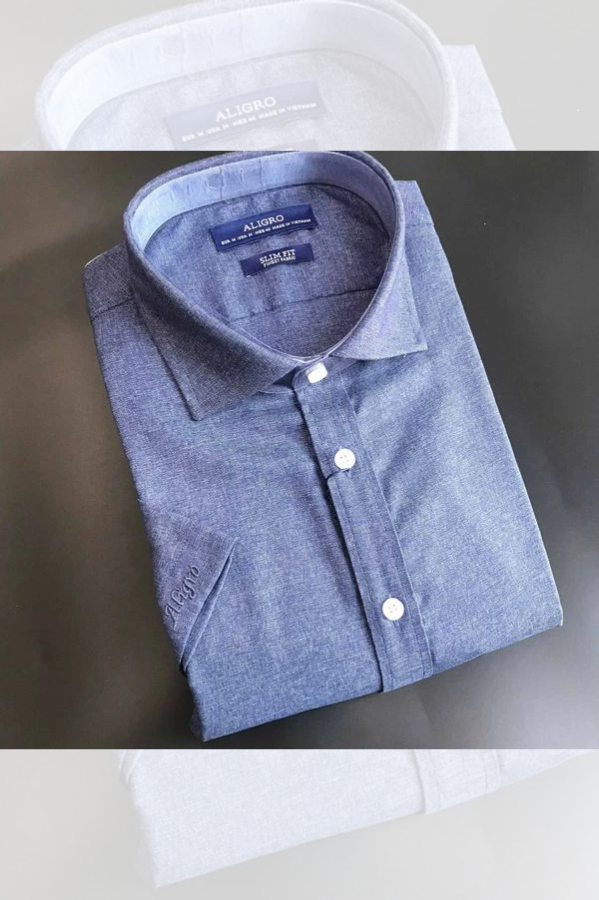 Áo sơ mi nam ngắn tay cao cấp Aligro ALGS-C75 vải prima cotton form SLIMFIT màu xanh blue