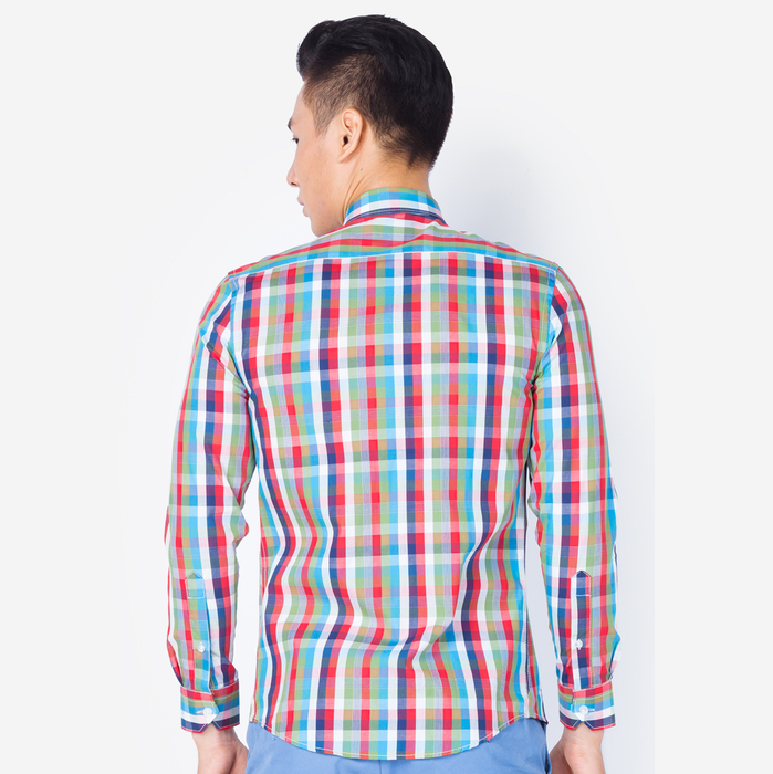 Áo sơ mi nam dài tay công sở cao cấp Aligro ALGS061 dáng Slimfit kẻ sọc xanh đỏ