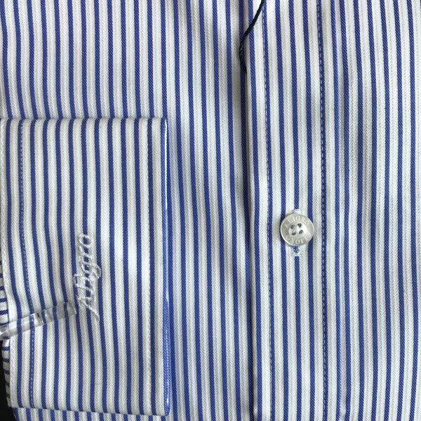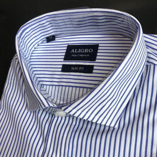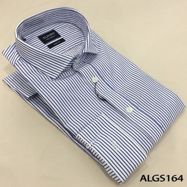Áo sơ mi dài tay công sở cao cấp Aligro ALGS164 dáng Slimfit kẻ sọc xanh - trắng