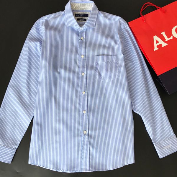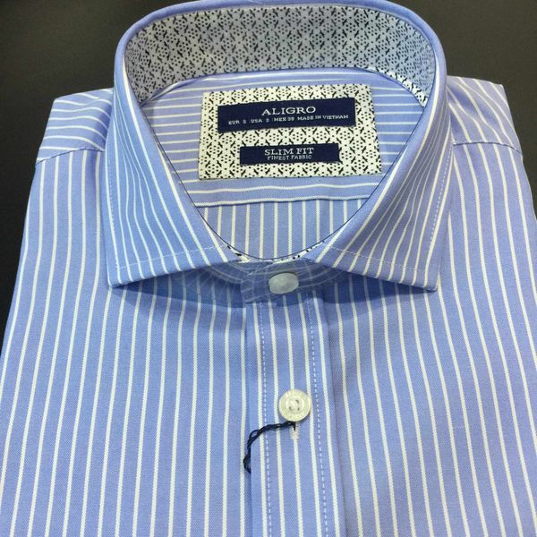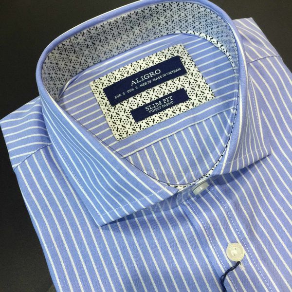 Áo sơ mi dài tay công sở cao cấp Aligro ALGS183 dáng Slimfit màu xanh kẻ sọc trắng
