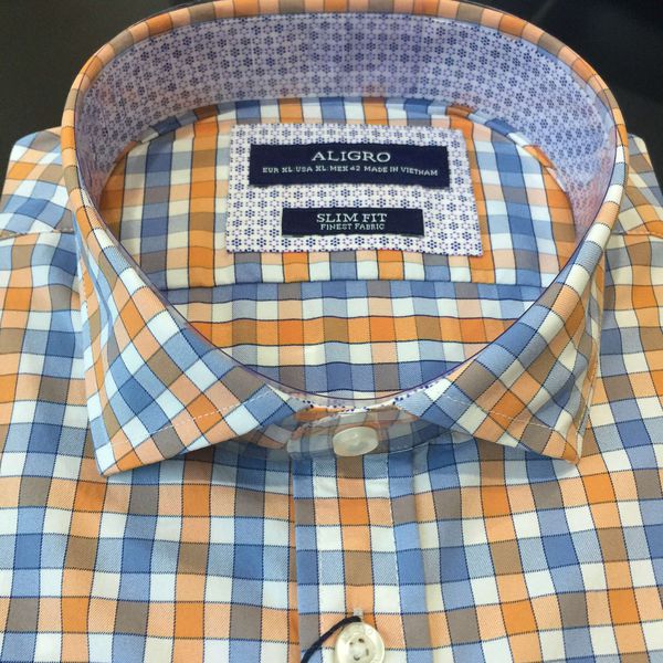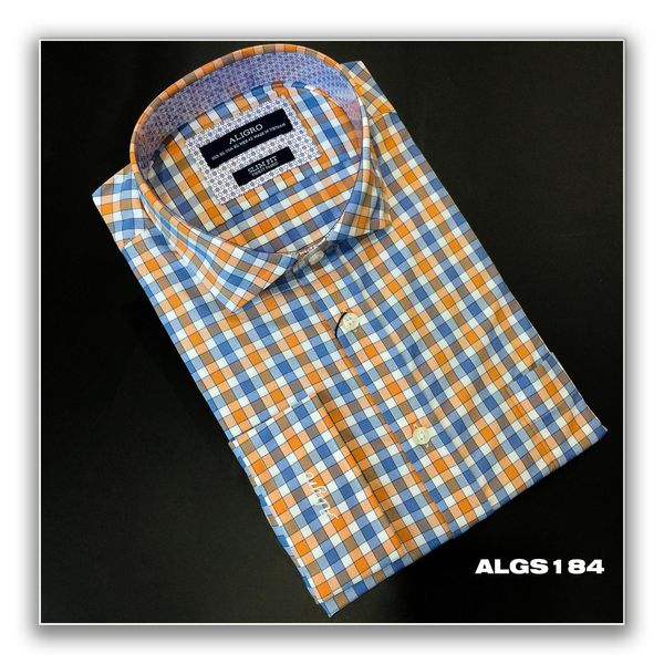 Áo sơ mi dài tay công sở cao cấp Aligro ALGS184 dáng Slimfit màu xanh kẻ sọc cam