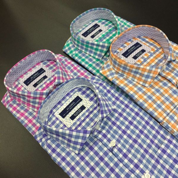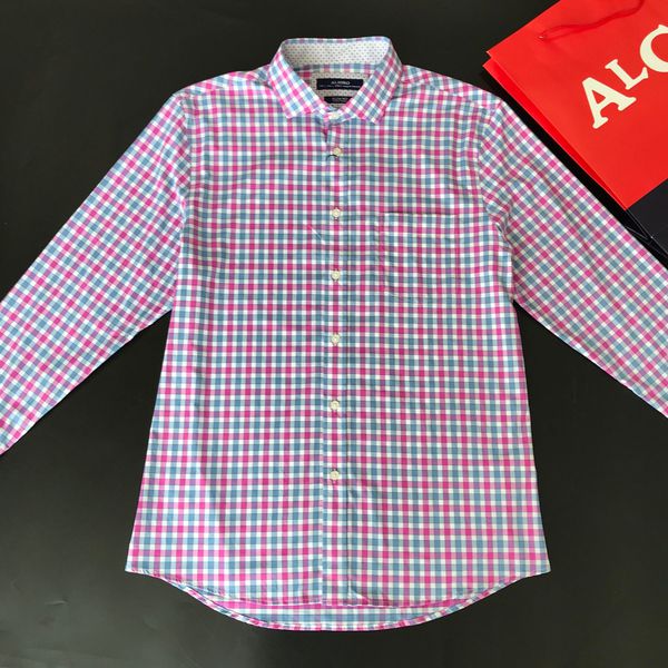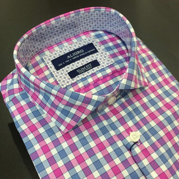 Áo sơ mi dài tay công sở cao cấp Aligro ALGS186 dáng Slimfit kẻ caro hồng xanh