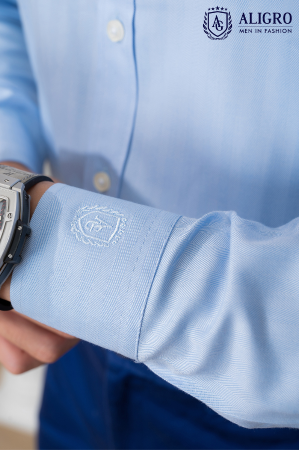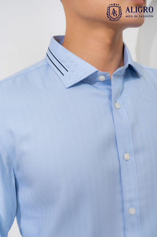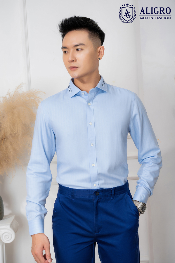 Áo sơ mi nam dài tay cao cấp Aligro ALGS214 chất liệu vải BAMBOO form SLIMFIT màu xanh dọc chìm