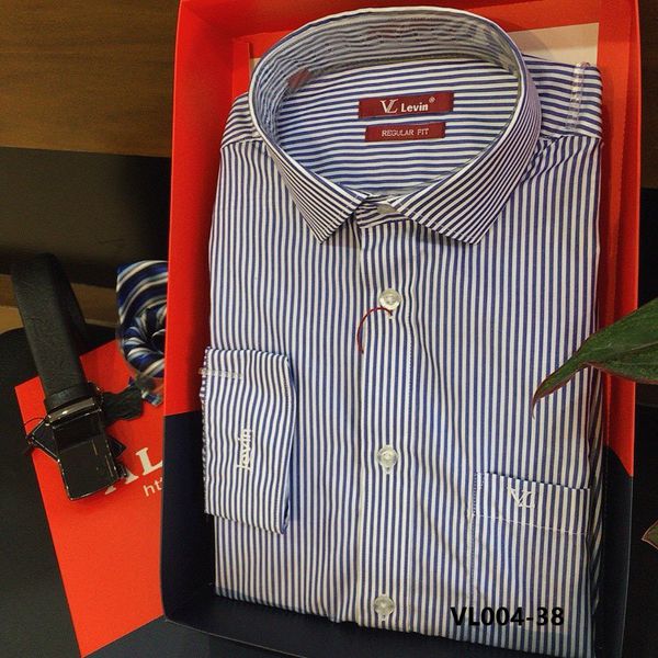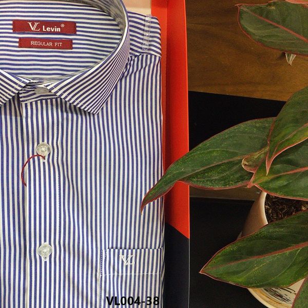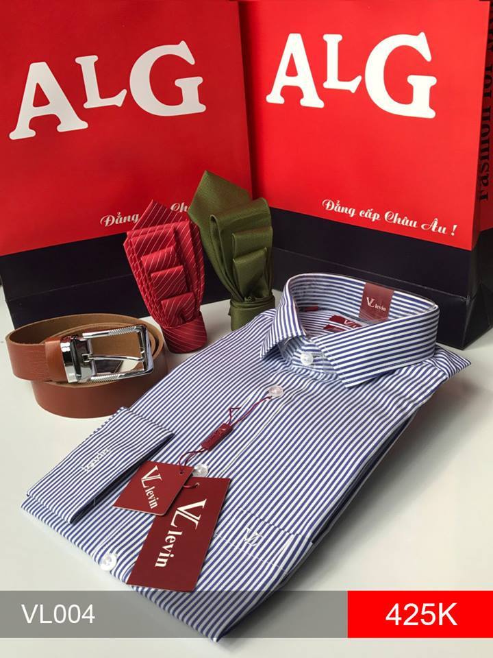 Áo sơ mi dài tay công sở cao cấp Aligro VL004 dáng Regularfit kẻ sọc trắng - xanh