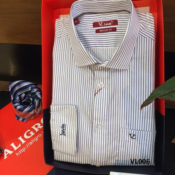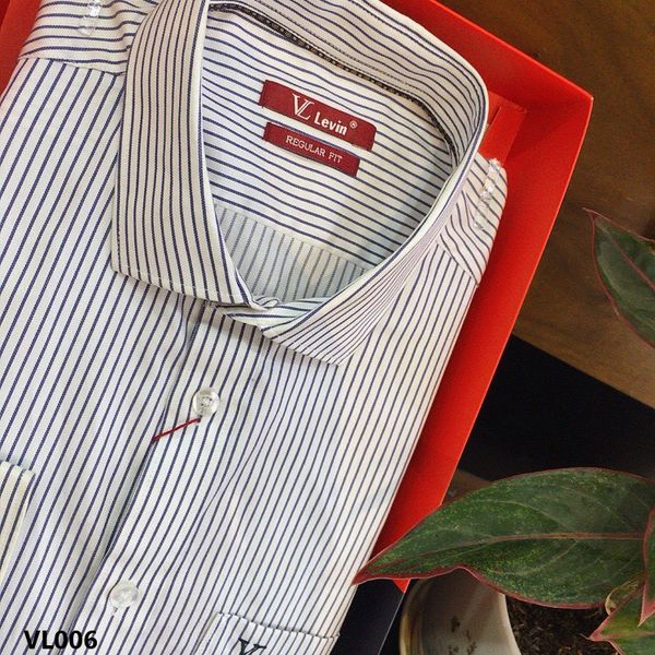 Áo sơ mi dài tay công sở cao cấp Aligro VL006 dáng Regularfit kẻ sọc trắng - xanh