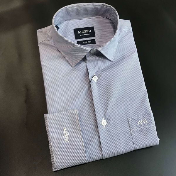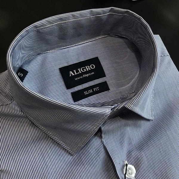 Áo sơ mi nam dài tay công sở cao cấp Aligro ALGS128 dáng Slimfit màu xanh kẻ dọc
